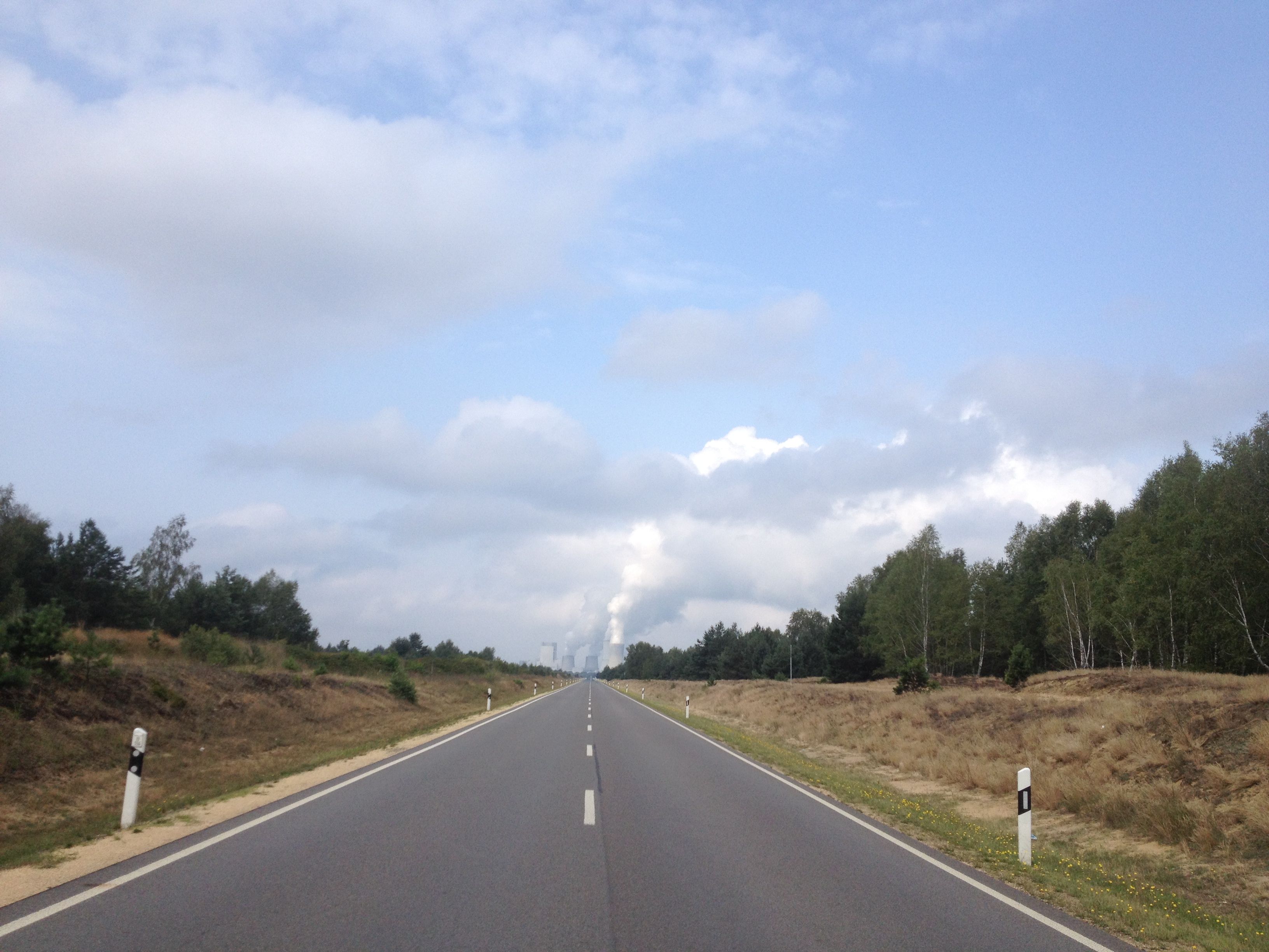Hmm, die Straße müßte Richtung Süden, oder Südosten führen und die Vegetation sieht nach Niedersachsen bzw. NRW aus. Auf welches Kraftwerk, mit drei Kühltürmen und Hochhaus daneben, hast Du Dich nun zubewegt.