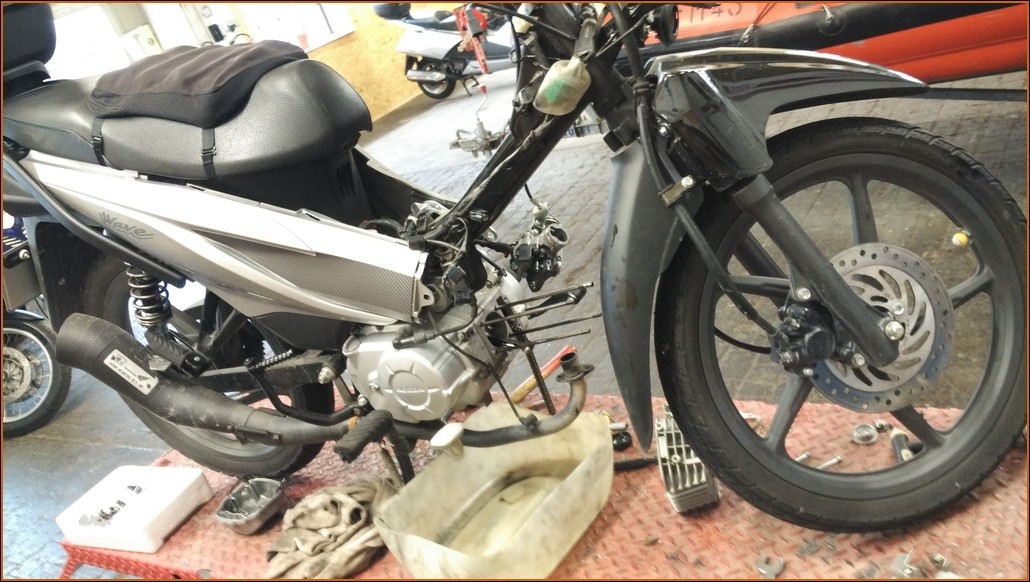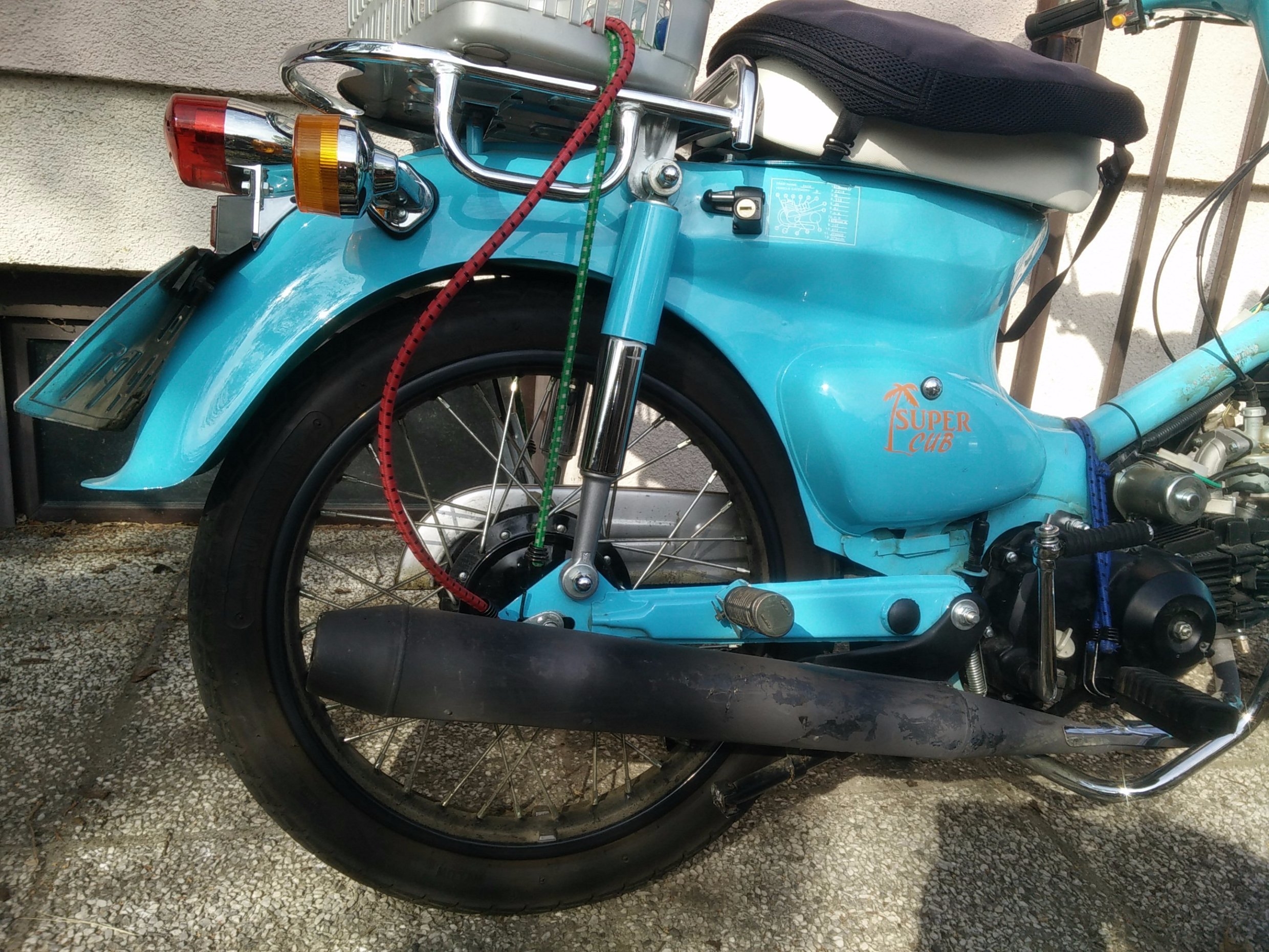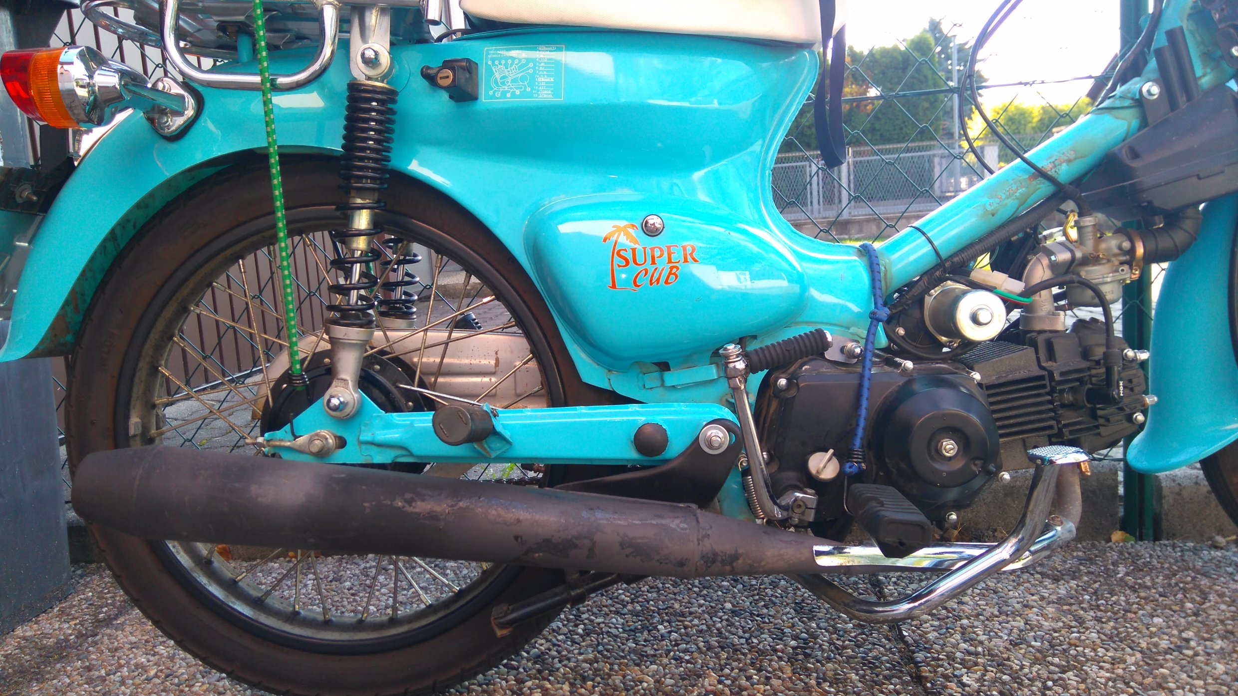 Die Wave Federbeine sind auf der Cub montiert. Probefahren steht an.