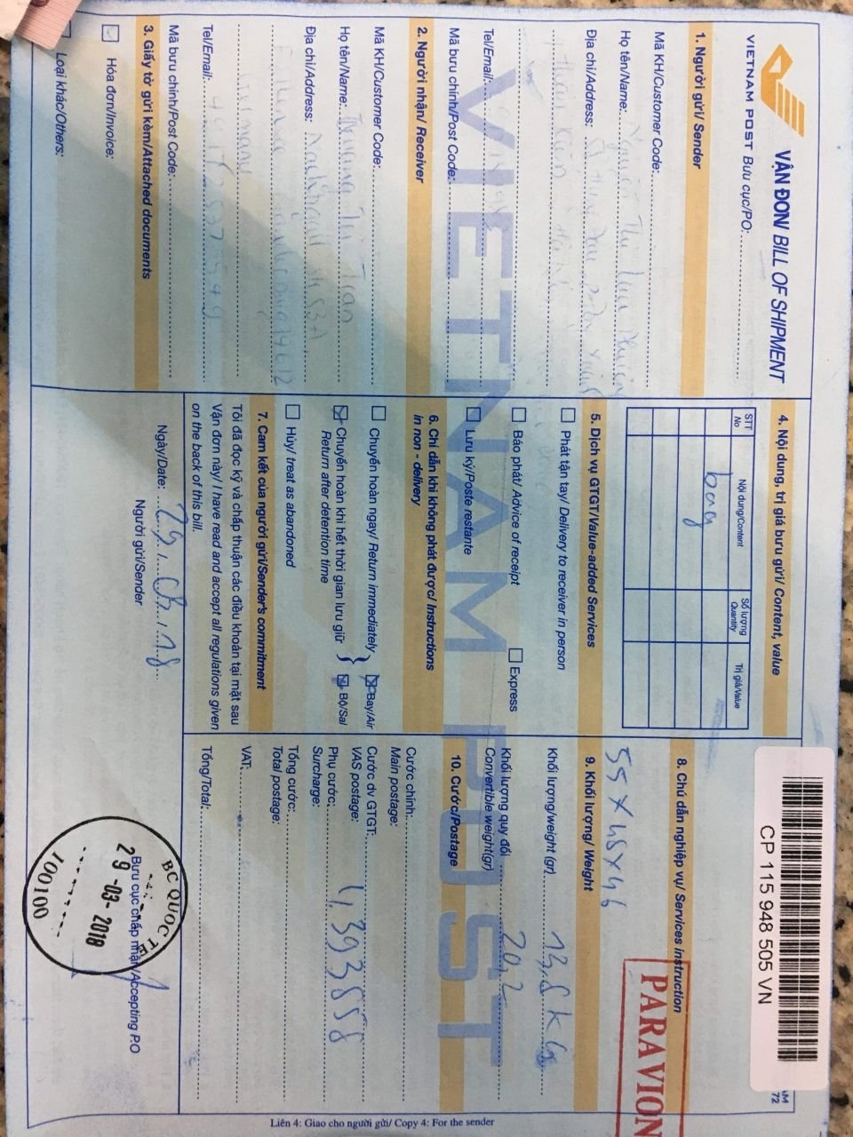 Sendungsnummer CP115948505VN