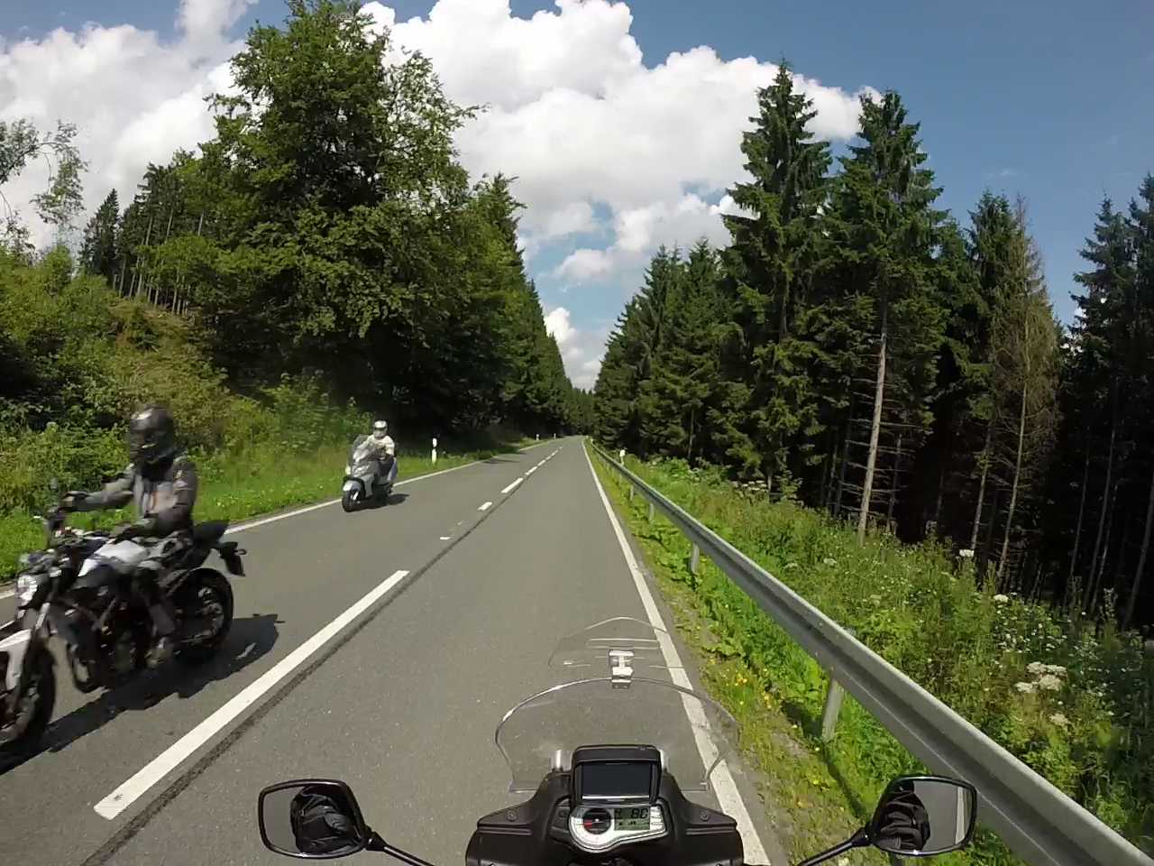 Leider hat wieder der Seitenständer aufgesetzt, bei 0:36 siehts aus, als wenn da ein Schnitt wäre, danach fahre ich weiter aussen... . Bei 0:58 muss etwas auf der Straße gelegen haben, da gabs hinten einen kleinen Rutscher... . Aber alles undramatisch, der BT023 bleibt eine Bank!