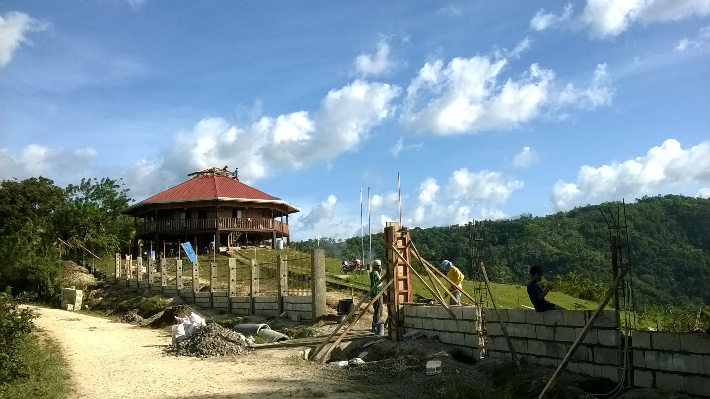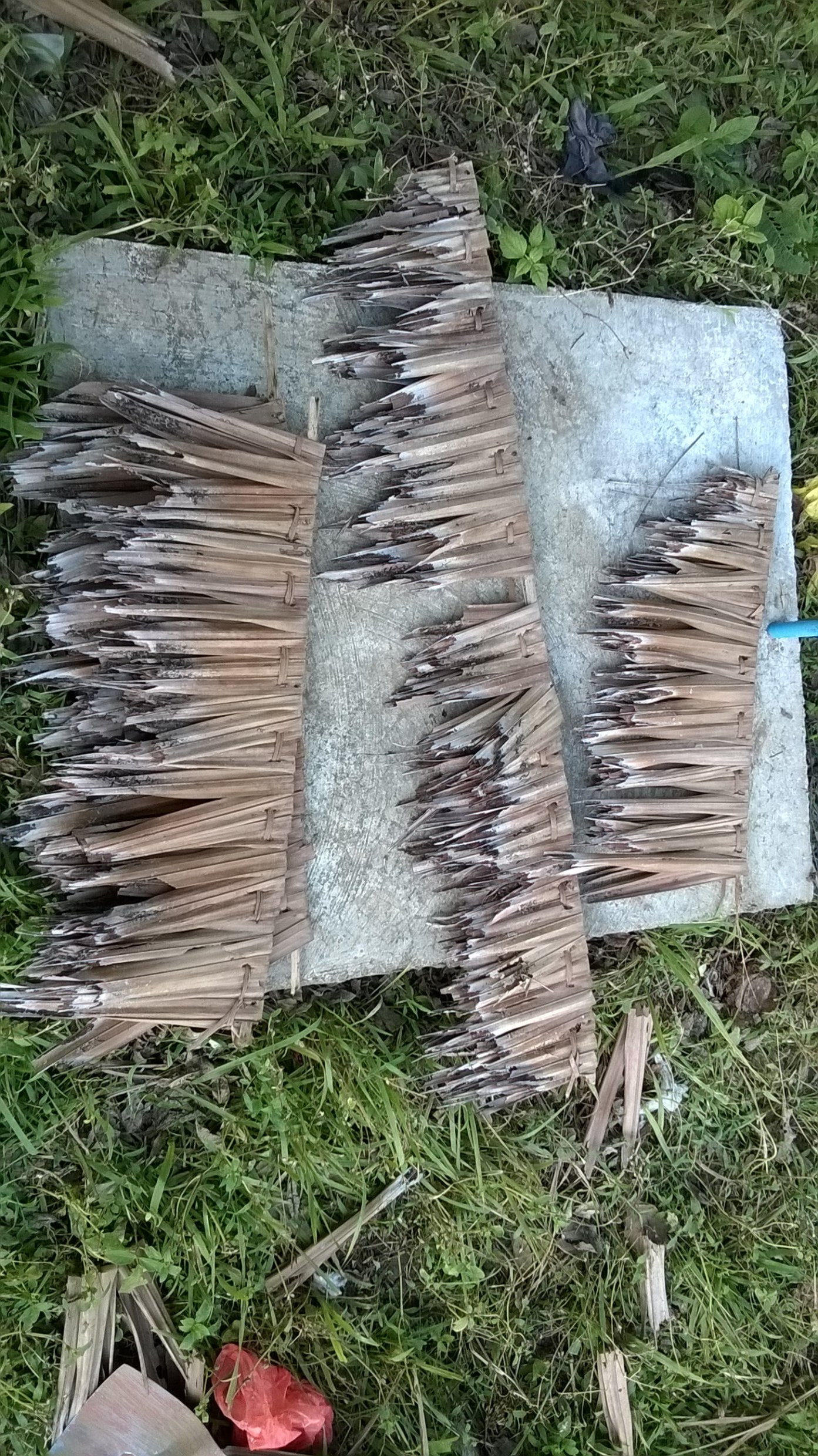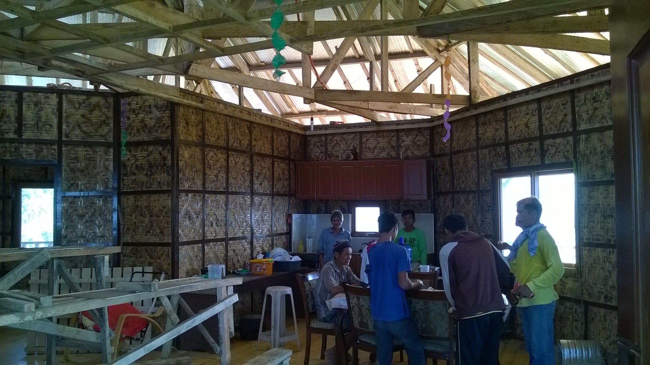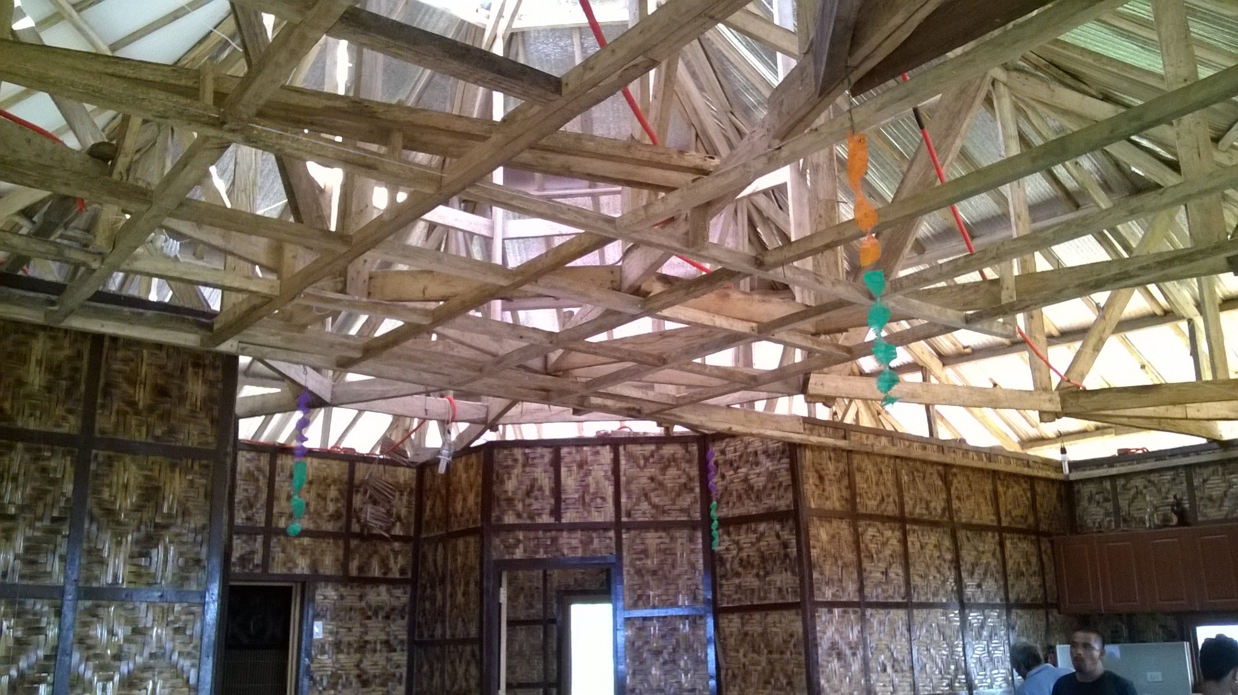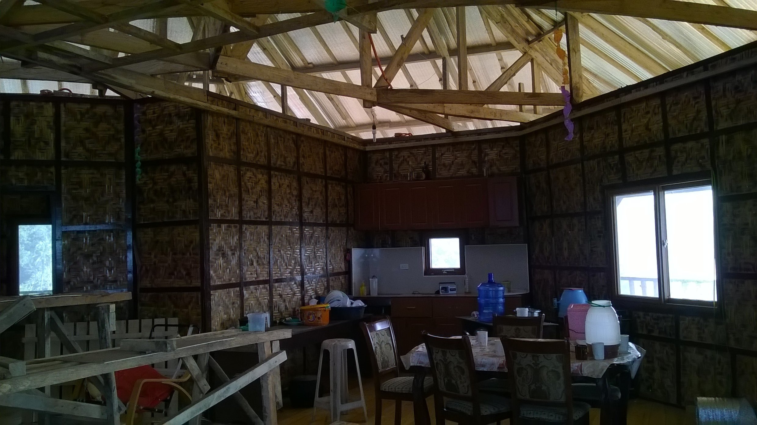 Das alte Dach war mit Nippa gedeckt. Ich wollte das explizit so und das gegen die Ratschläge der Locals. Ich wollte ein Haus das ganz im rural native Style dasteht. Aber ein Nippadach dicht zu kriegen UND es auch dicht zu behalten ist eine Heidenarbeit und ist sehr aufwändig. Dazu muss es auch regelmässig ausgewechselt werden. Was dann wiederum eine Riesensauerei verursacht. All das und noch ein paar andere waren die Gründe warum ich mich dann doch für ein Colorroof entschieden haben.