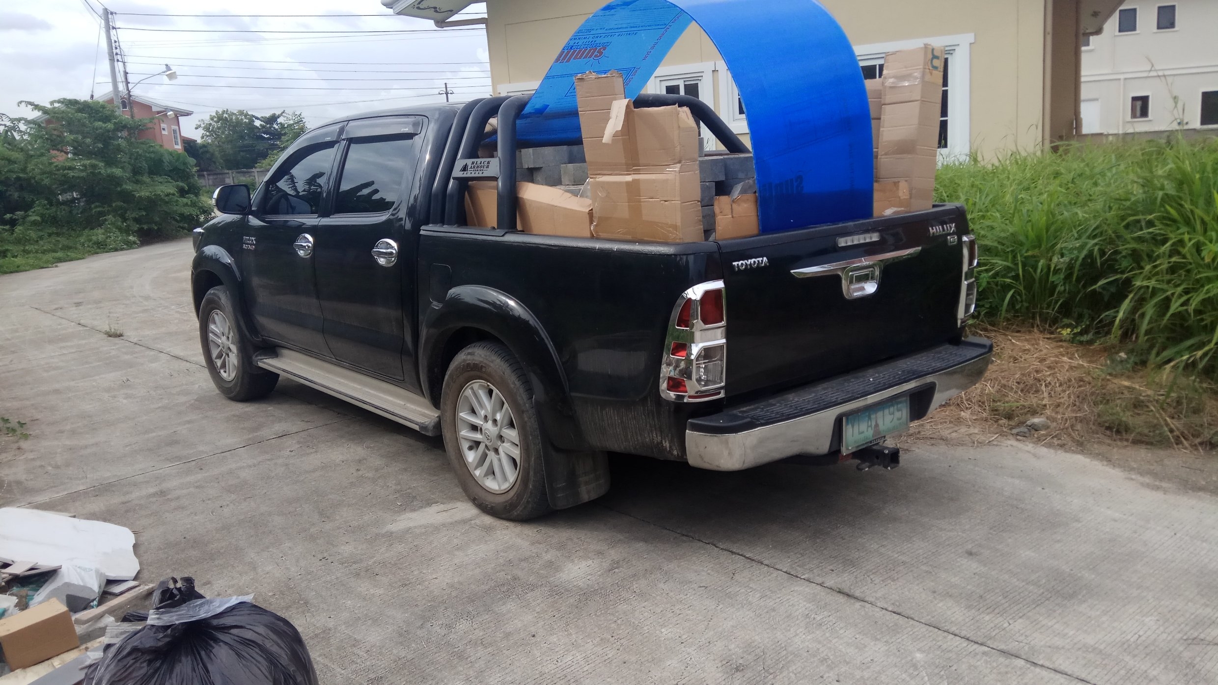 Das war überzähliges Baumaterial das von Cordova nach Tubigon musste. Die Tonne Nutzlast wahr sehr wahrscheinlch gaaaanz leicht überschritten. Aber so genau weiss ich es auch nicht. Habe das Auto ja nicht gewogen und als LKW wurde ich auf der Fähre auch nicht eingestuft.