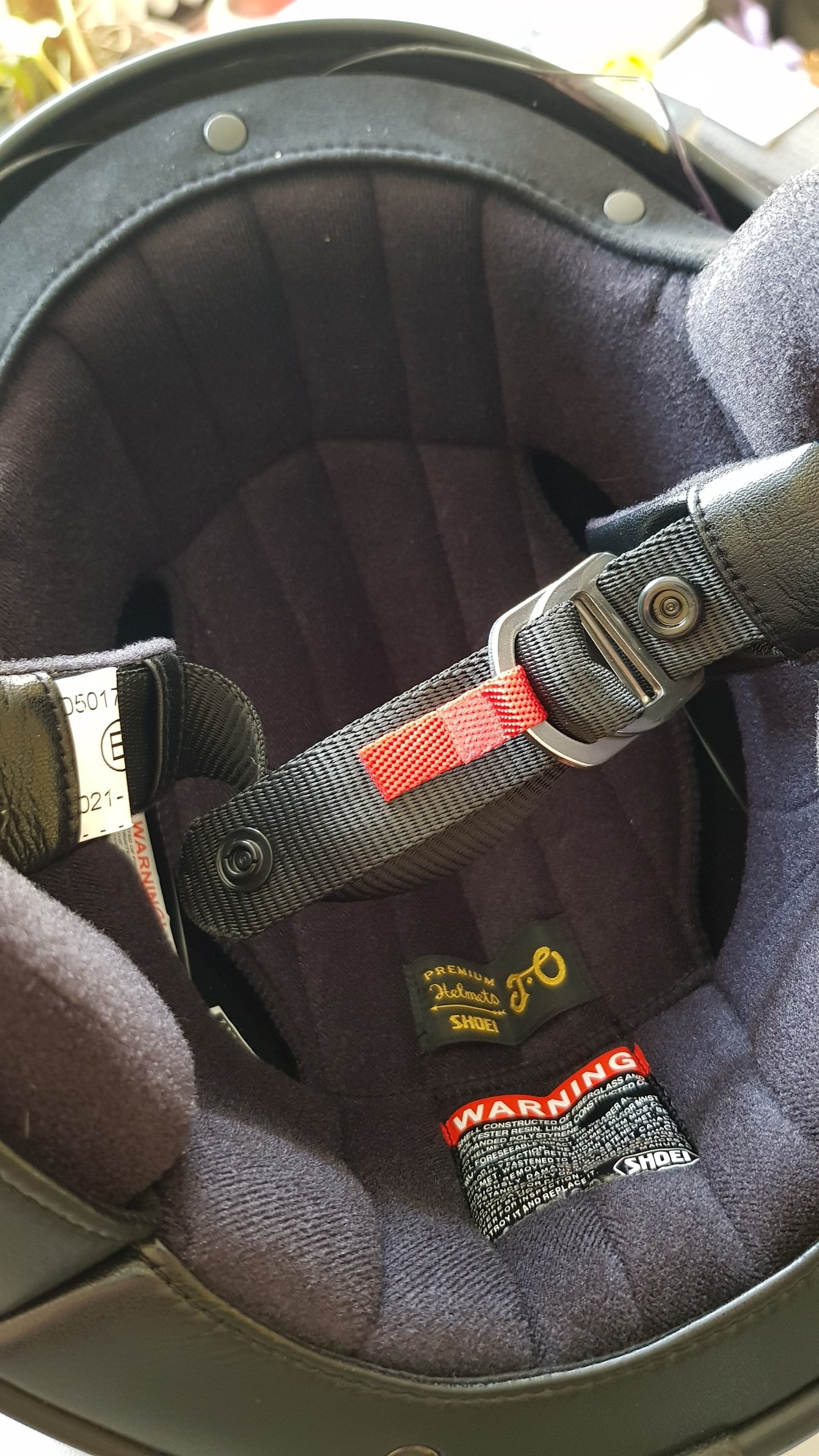 Der HJC schließt im Bereich der Brillenbügel sehr gut ab. Hat leider ein Drucktastenschloss, der SHOEI einen Doppel-D-Ring. Sitzt dadurch immer perfekt.