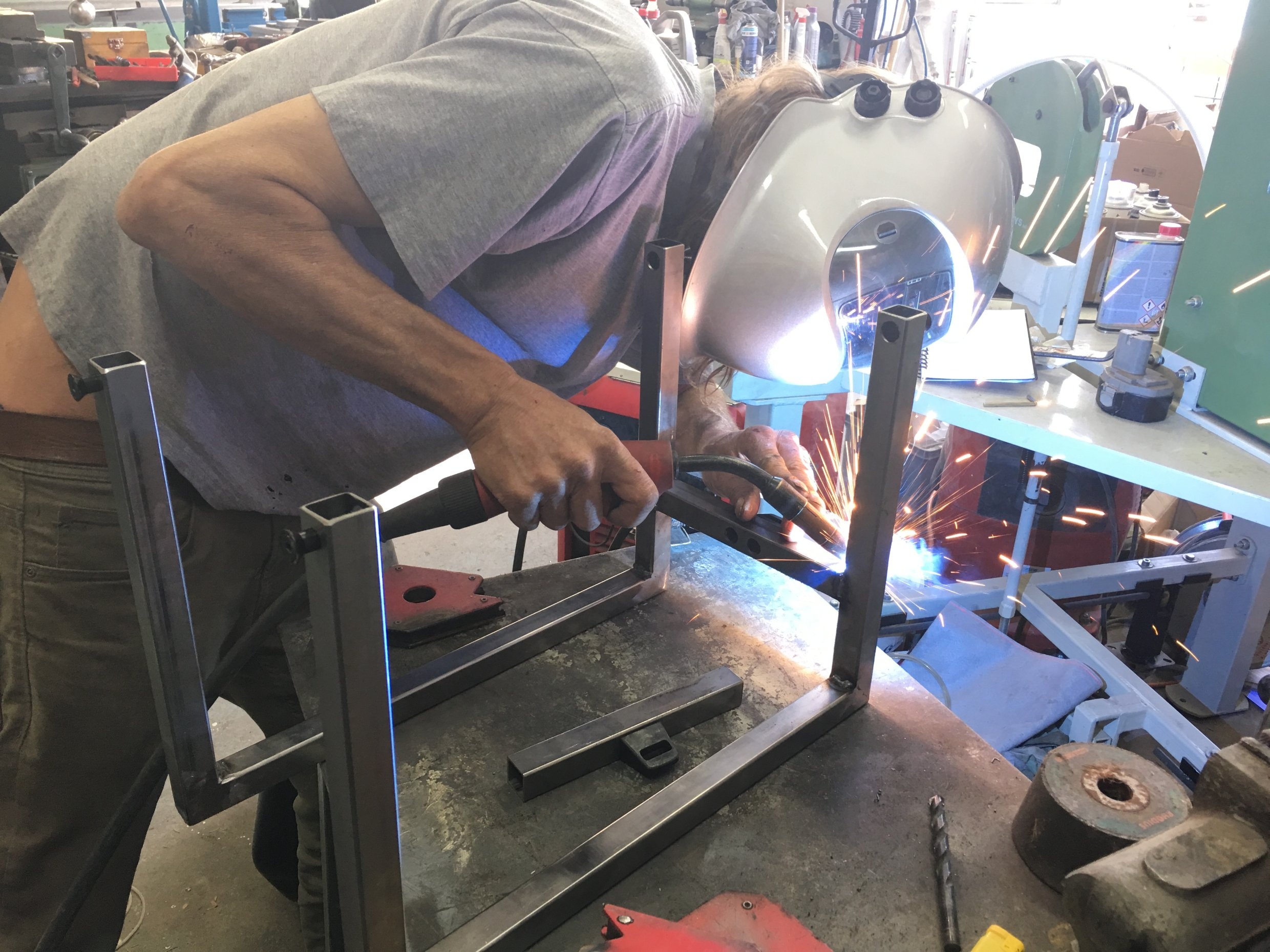 Genau, das geht auch als Campingtisch, man kann Handstand drauf machen, und zum Schrauben auch das Moped draufpacken.