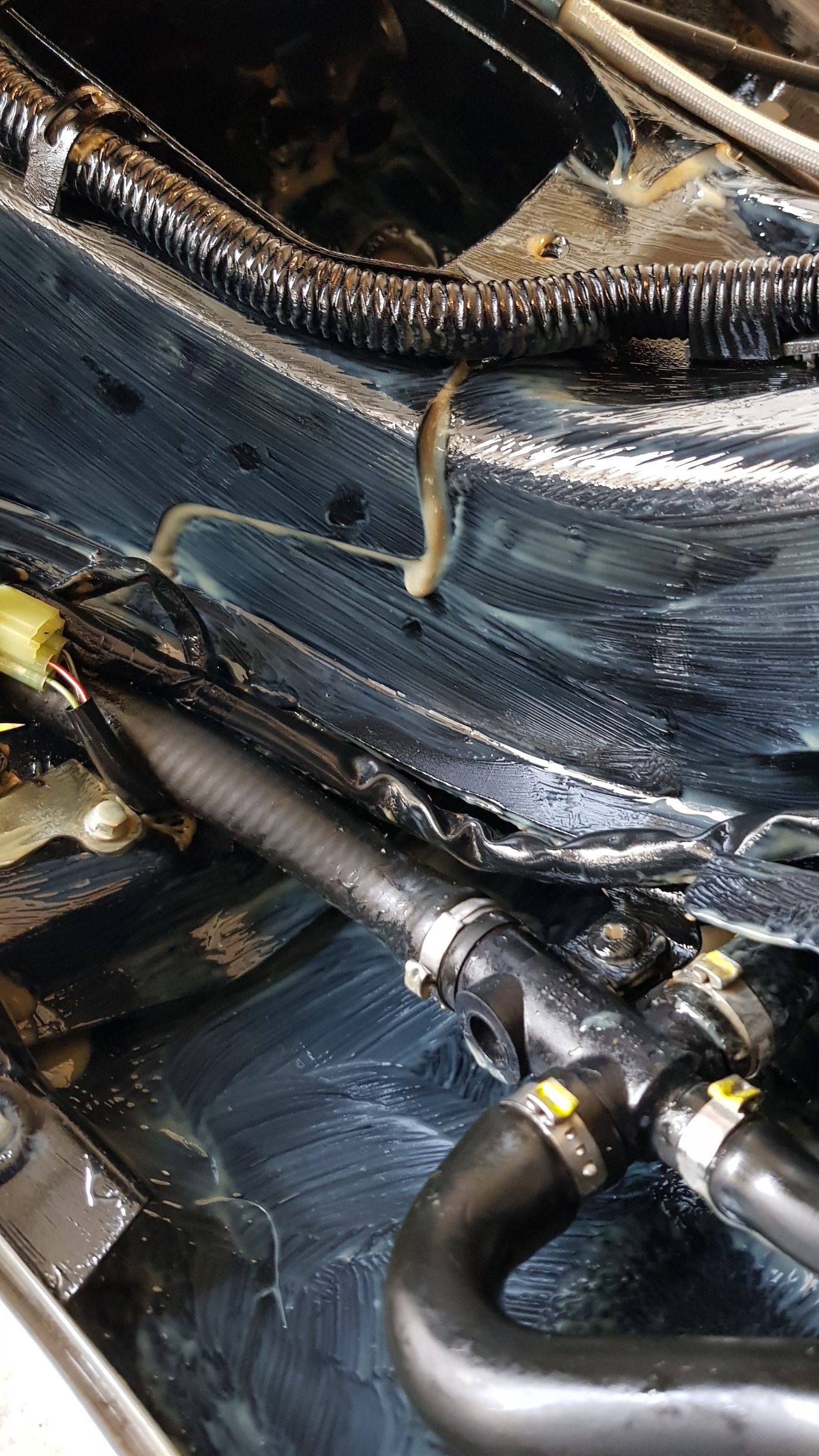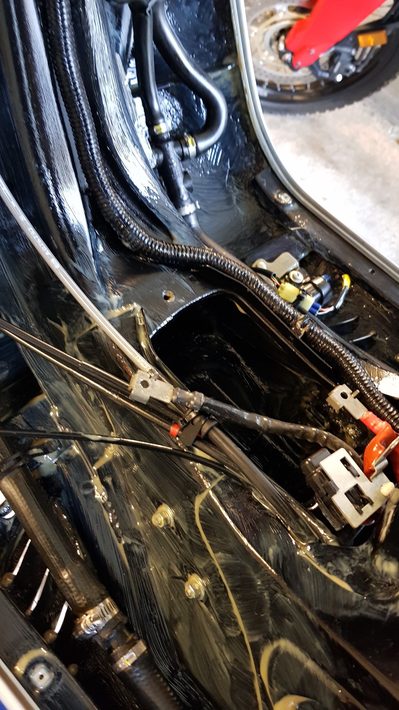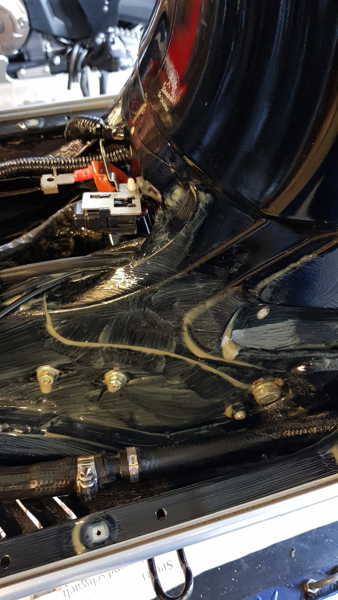 Das ist kein Unterbodenschutz, Fluidfilm beruht auf Wollfettbasis/Lanolin, damit werden in der Schiffahrt ganze Ballasttanks mit ausgematscht, pardon beschichtet. Härtet nicht aus. Wird wie Fett einfach abgewischt. Das Problem der Vespa ist die Tatsache das oben hui, unten großflächig weggerostet. Ab Werk, nadda oder nix. ...