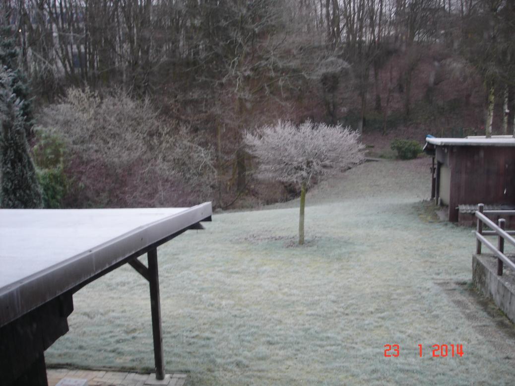 Ein Blick aus dem Wohnzimmer in den winterlichen Garten...
