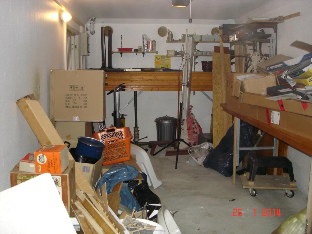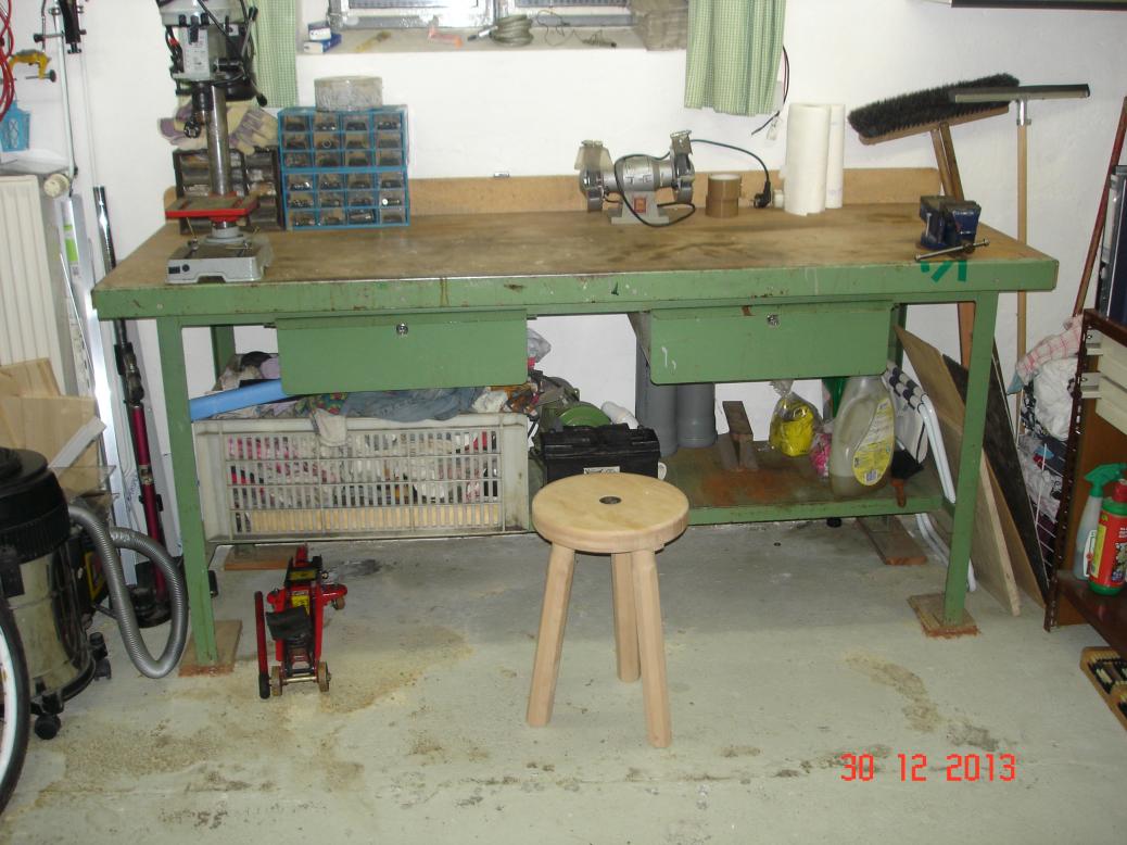 Die Werkbank ist übrigens nicht von mir, die hat der Vorbesitzer drin gelassen. Die Werkbank war übrigens bei Übernahme bis zum Fenster zugemüllt - schon grob aufgeräumt und mit meinen Utensilien versehen. In beiden Garagen sind jeweils auch noch Werkbänke.