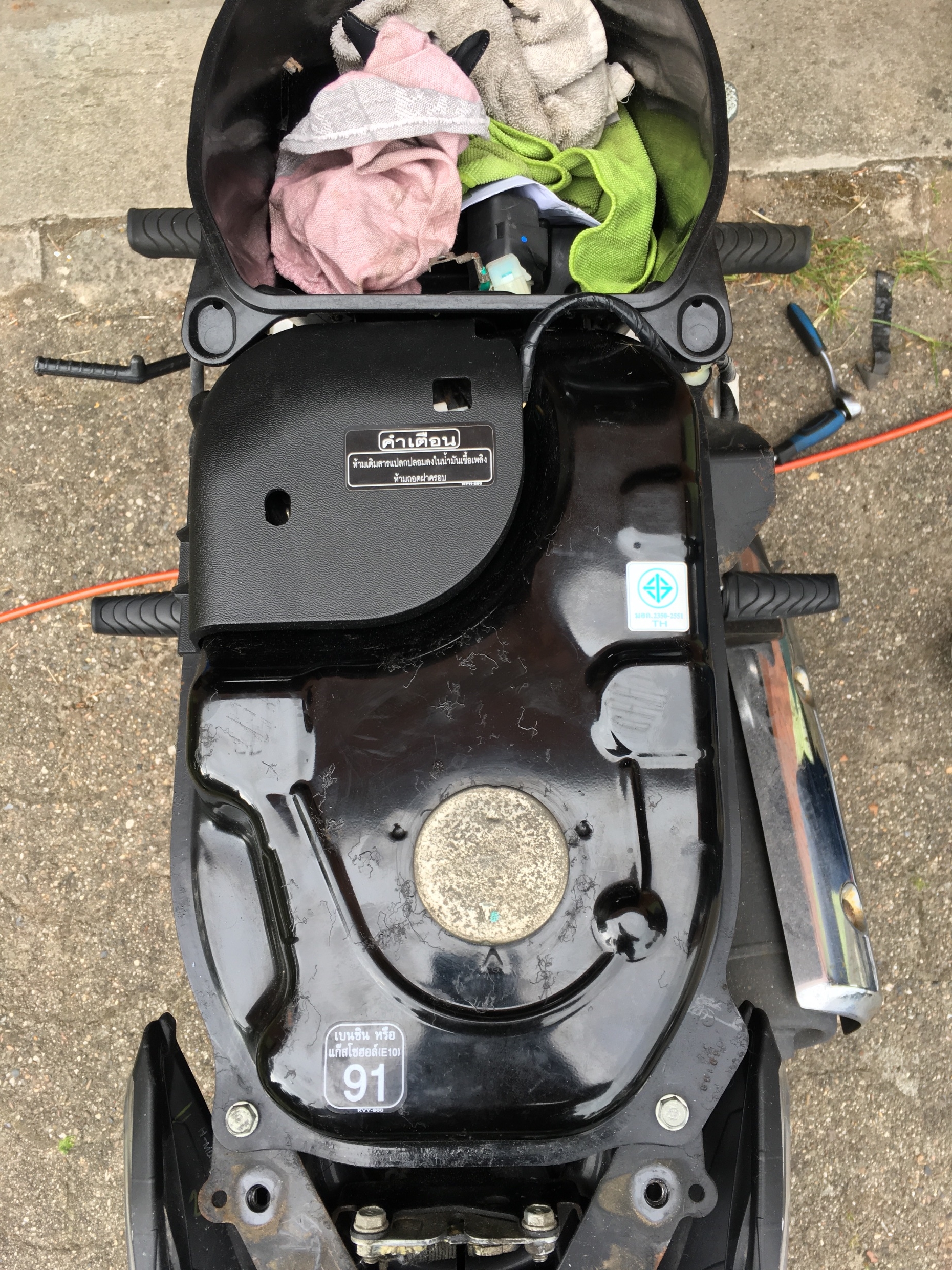 Fahrzeuge: 1 x INNO 125i blau, 3 x WAVE schwarz, +1 Unfallwave, +1 rot = NANA + 2 x China CUB 110.