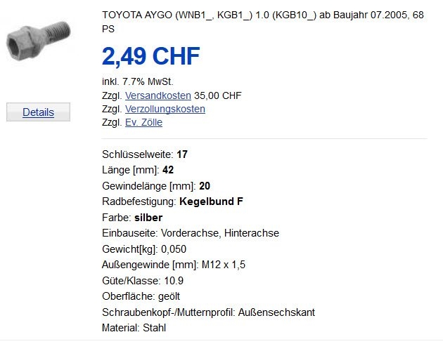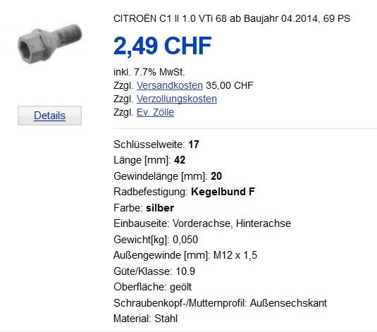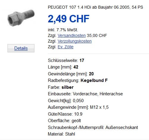 Man muss nur die Schrauben beibehalten. Denn Peugeot hat bei den Schrauben eine andere Steigung als Toyota und Citroen. Die Länge ist aber die gleiche.