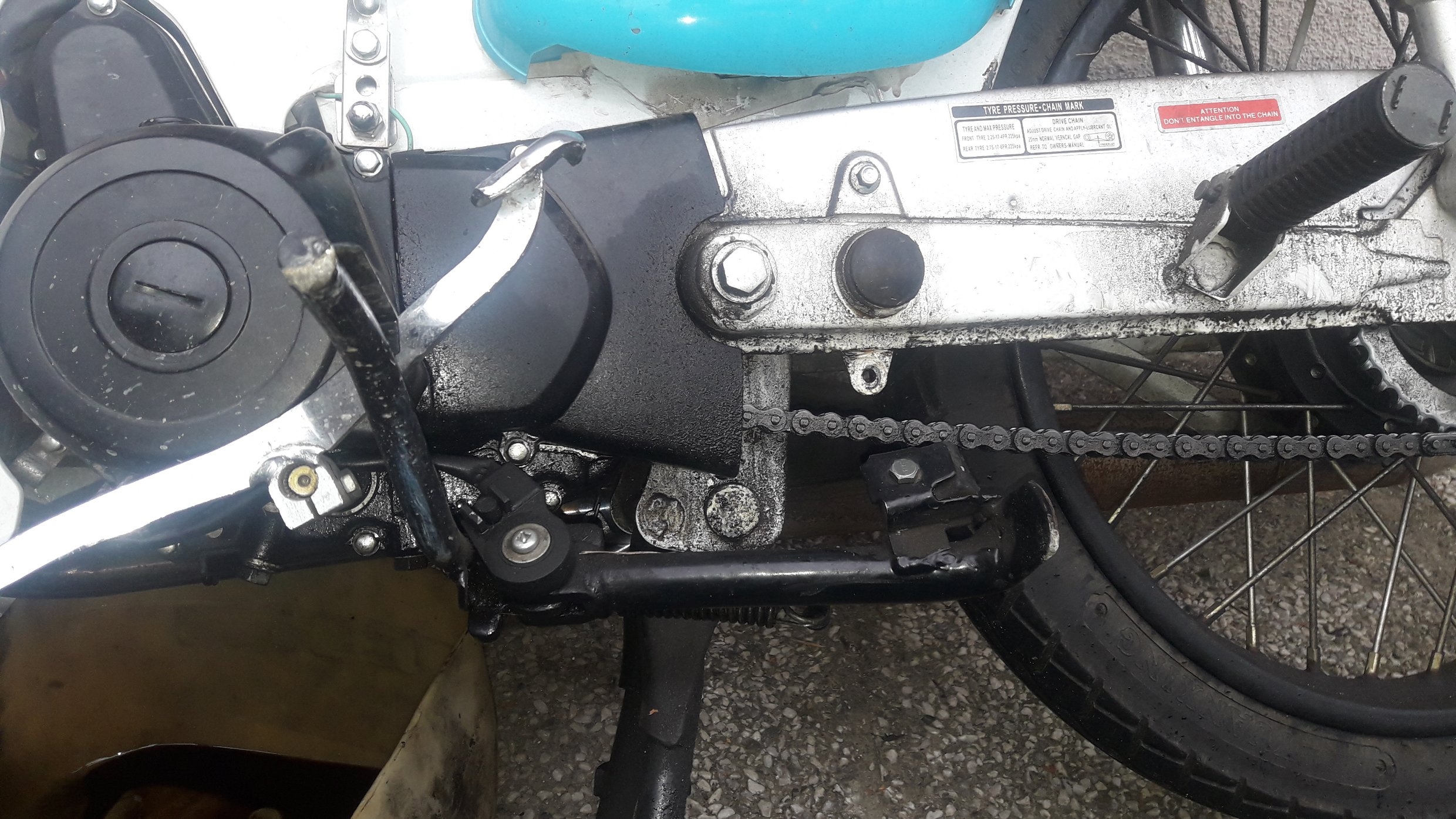 Ich bohre Löcher in die Fussrasten und verdrahte dann die Gummi's damit, denn ich bin ein Russ'.