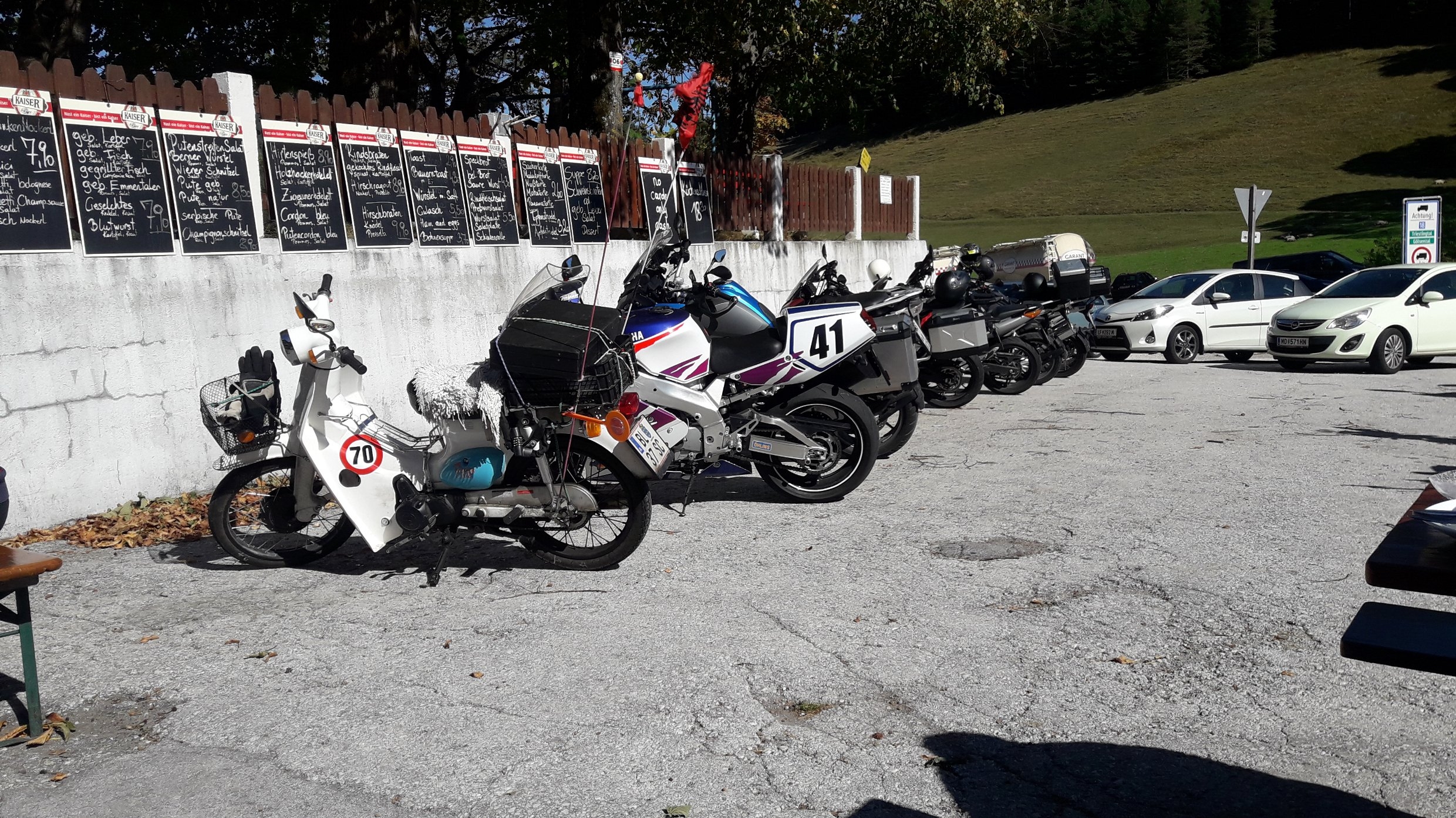 Der Vorplatz ist immer von Motorrädern und ca. 50 Gästen besetzt. Die Küche ist tüchtig, das Essen bürgerlich erstklassig und die Bedienung IMHO perfekt.