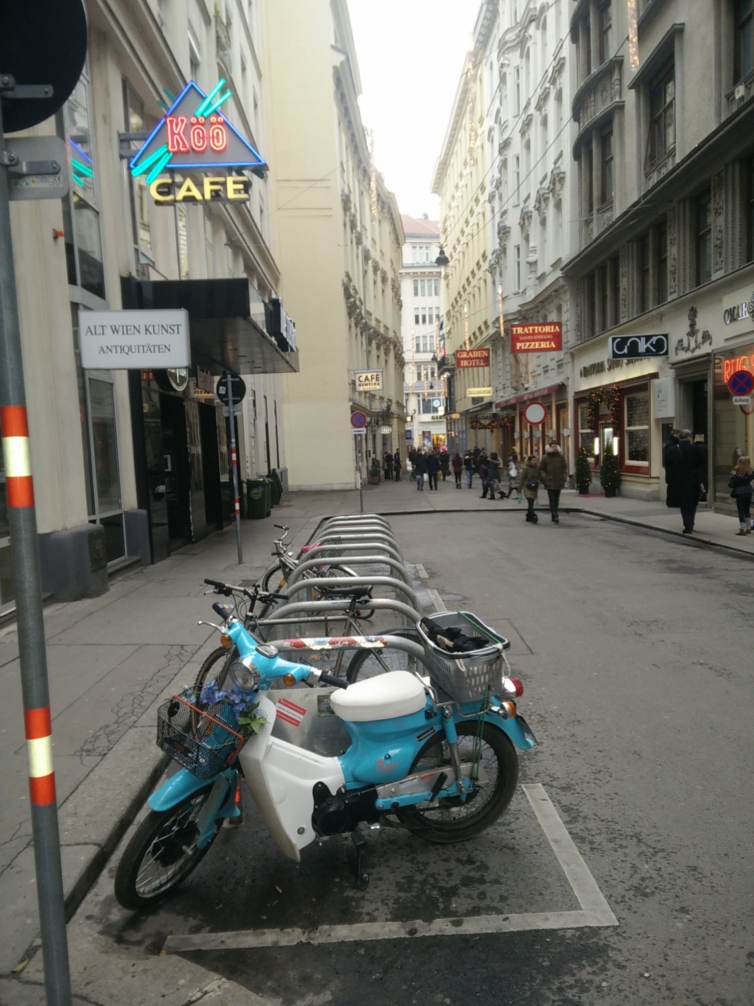 alsdann bin ich bei grauslichem Gegenwind nach Wien,hab die CUB 500 m über den Stephansplatz bis zum Cafe Hawelka geschoben.