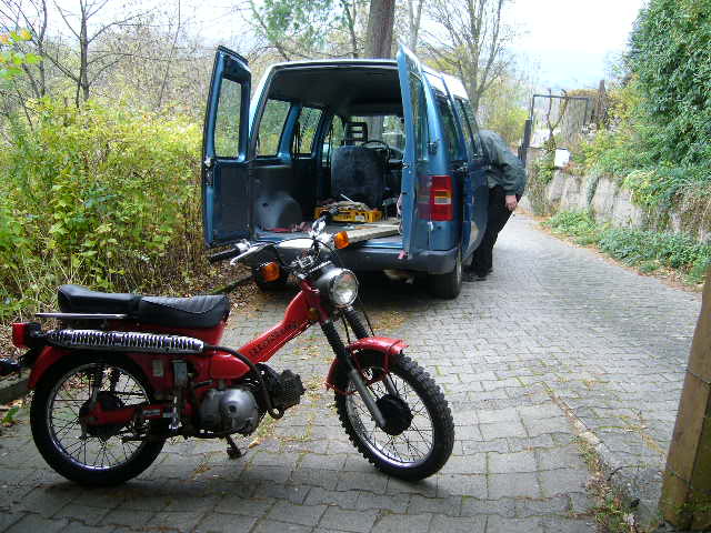 Mir oblag heute die Aufgabe, für unseren Kameraden aus Berlin eine seltene HONDA CT 110 in Schifferstadt/Rheinland Pfalz, abzuholen.