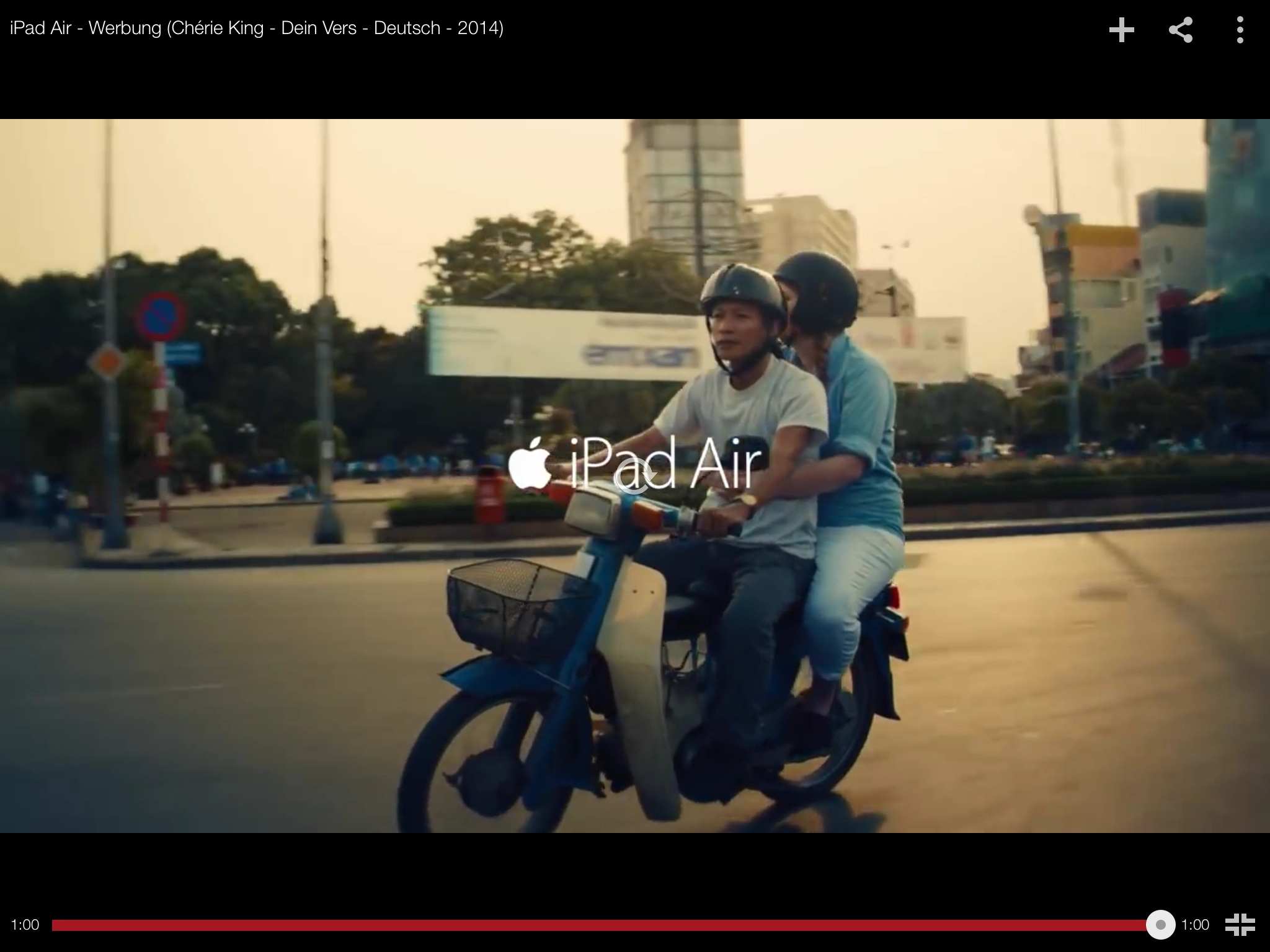 Gerade eben habe ich die neue Apple Werbung gesehen. Ich meine fürs aktuelle iPad Air. Es geht um eine reisebloggerin. Zum Schluss sieht man mehrere sekunden eine alte blaue cub fahren und das Logo erscheint und die Werbung endet.