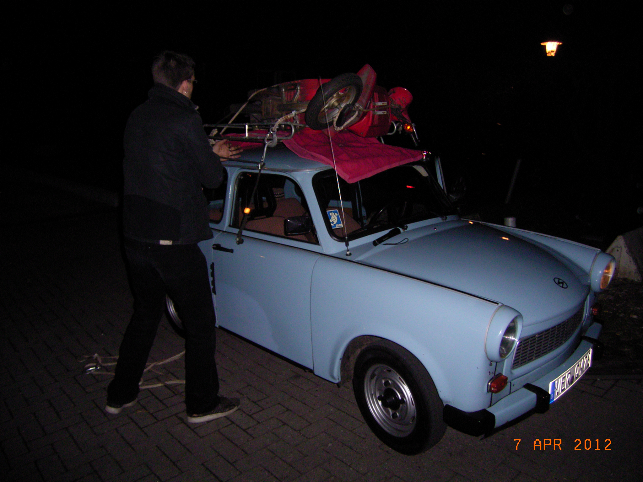 auf den Bildern sieht man die gewohnte art einen uglyscooter zu transportieren und den glücklihcen fahrer in der typischen Körperhaltung. Wer hart arbeitet muss auch hart saufen (und schwitzten) Man zeigt eben gerne was man hat! (und kann)