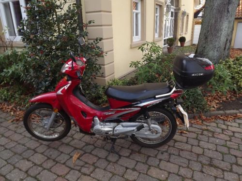 Hab für Eva ne Hisun gekauft, sie wollte meine Inno mit nach Ludwigshafen nehmen, das hätte ich nicht verkraftet. Also gestern ne Hisun 100 für 200,-€ gekauft mit 2400km auf der Uhr von nem Rentner gefahren.