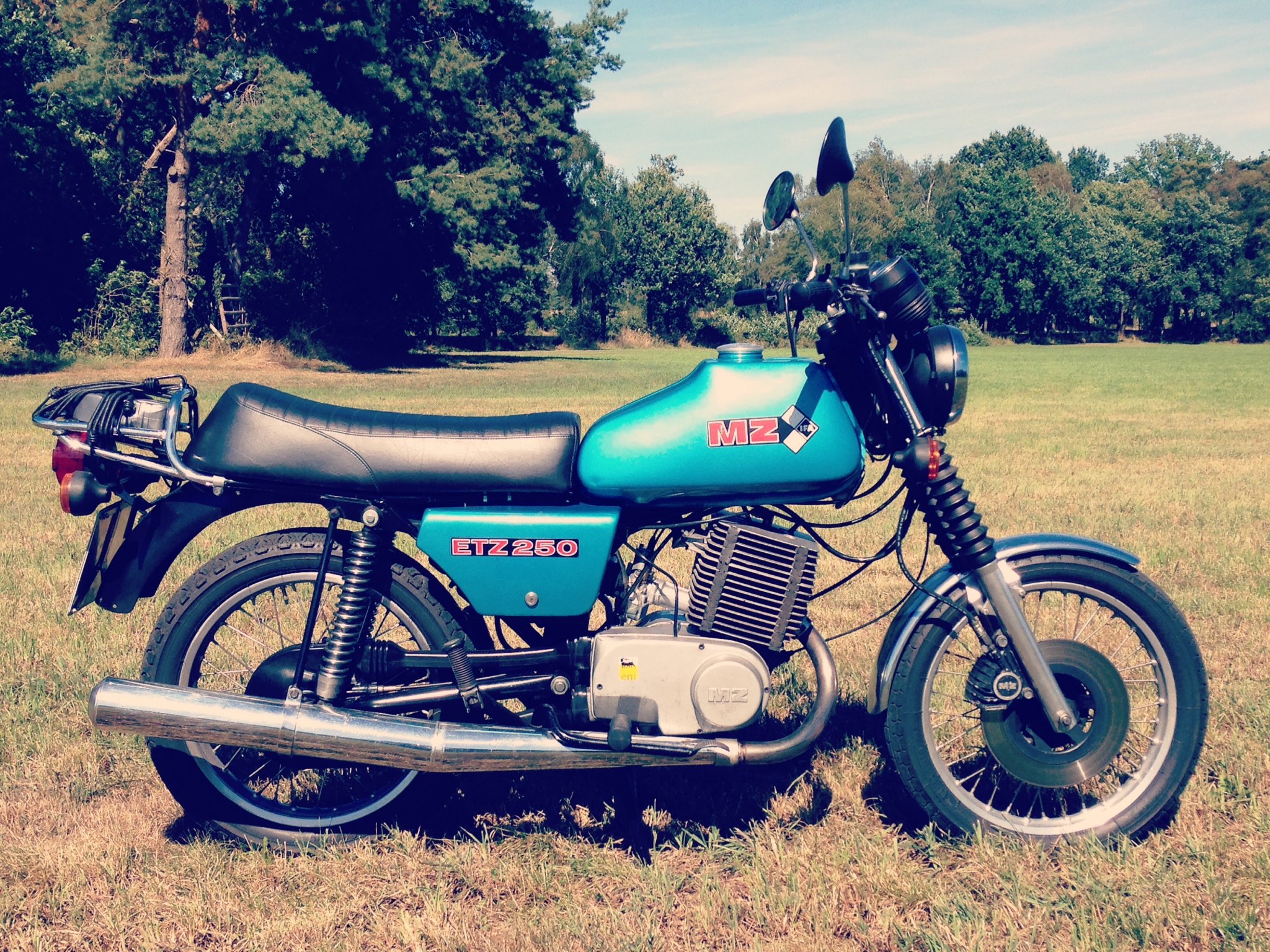 Eine ETZ 250 fand ich schon immer cool. Recht modern. nicht so gedrungen wie die TS, wenn auch deutlich schnöder und mit einem stimmigen 18/18 Radsatz. gefällig!