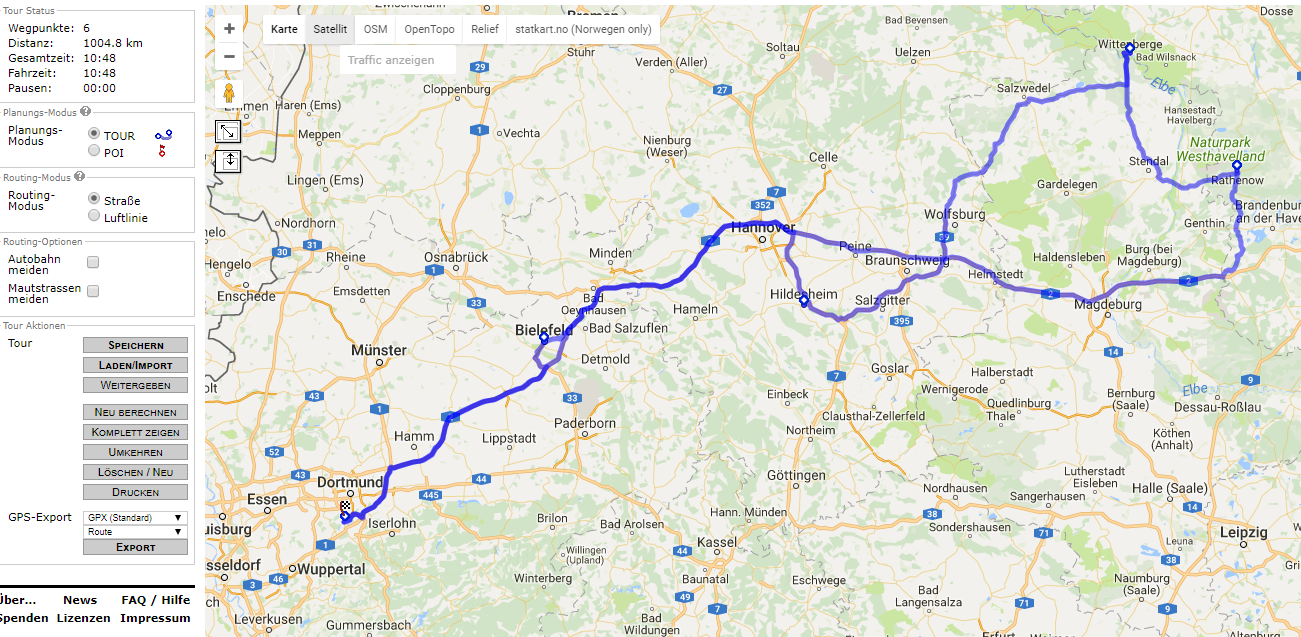 Gefahren wird eine große Runde West- und Ostdeutschland, die über Bielefeld, Wittenberge, Rathenow, Hildesheim wieder zurück nach Dortmund führt.