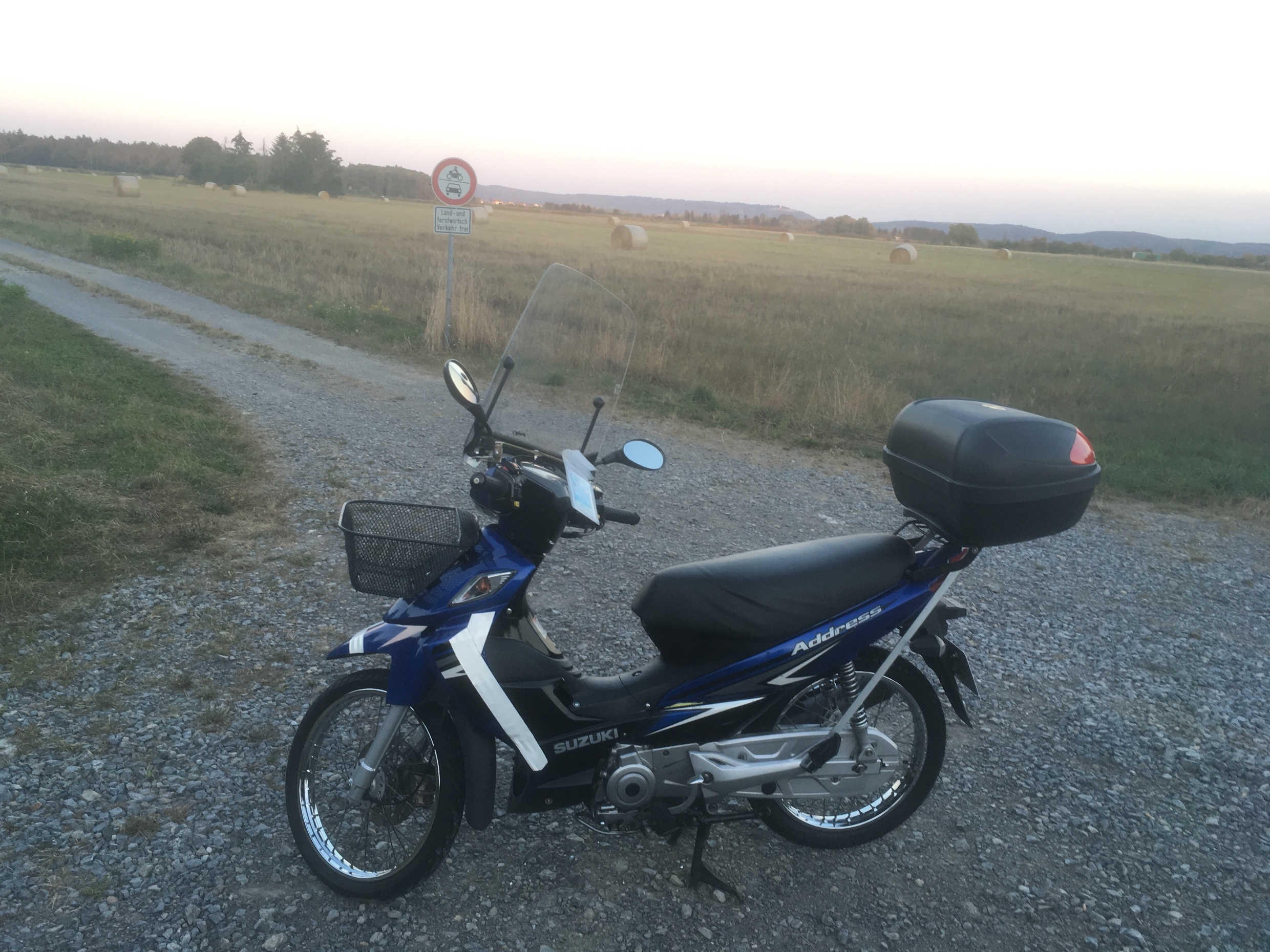 Glückwunsch zur Adress. Wenn die kleine Originalscheibe dabei ist, dann montier die mal. Die ist ein aerodynamisches Meisterwerk. Macht die Suzi flott. Deswegen brauchen die Adretten keine kleine Puig, weil die Originalscheibe das mindestens genauso gut kann.