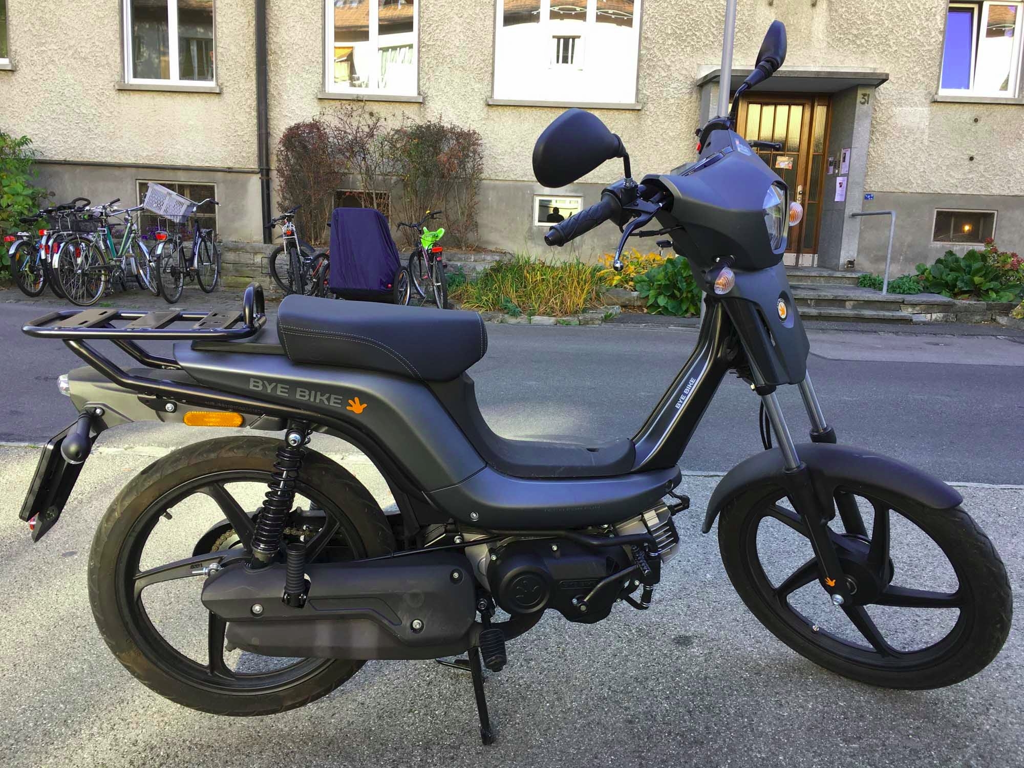 Das Mofa sehe ich in der Fantasie schon mit den 2 riesigen Givi Koffern Links und rechts, darüber ne Gepäckrolle mit Zelt und Mätteli oder so. Wir das Papamobil für die Mofaferien im Sommer 2019. Mein Junior wird dann ein Piaggio Si fahren dürfen. Ich hoffe, beide Mofas bringen dann etwa den gleichen Schnitt in Sachen Reisegeschwindigkeit hin.