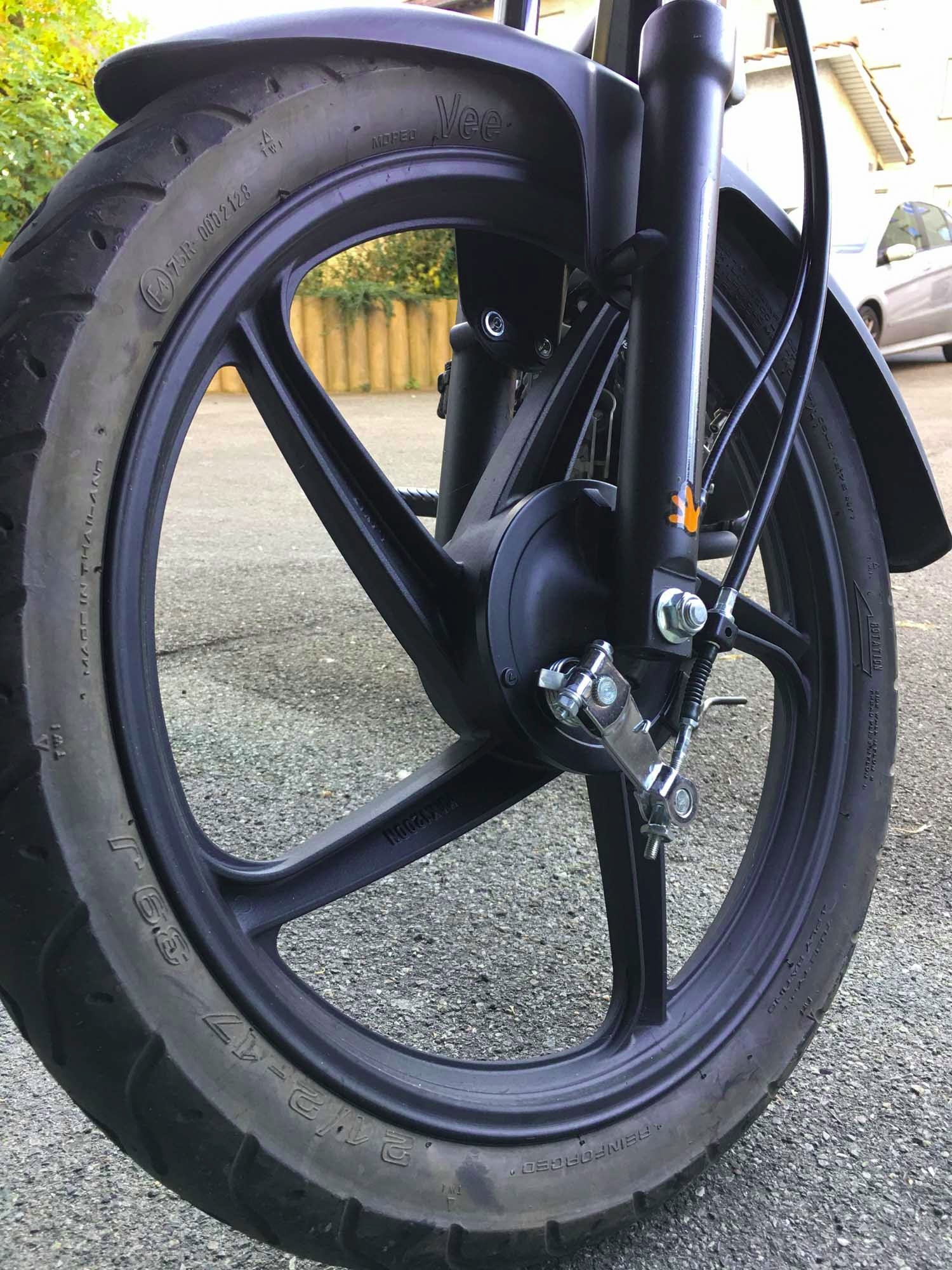 Auch die Leistung ist vergleichsweise (mit CH üblichen 30kmh Mofas) gut. Es schafft die 30 kmh auch noch wenn es etwas Bergauf geht, das haben andere Mofas die ich fuhr nicht geschafft. Die brechen bergauf i.d.R. ziemlich ein. Was mir auffällt, die Übersetzung wird nicht wirklich Linear angepasst. Da ist irgendwo ein "Loch" werde mal schauen ob die ganze Variotechnik sauber läuft und ev. andere Gewichte ausprobieren. Das hat aber noch Zeit.