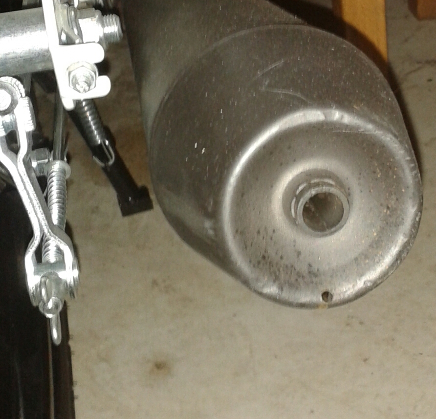 Alsdann Frage ich: "Hat die 3-Gang Super Cub 110 hinten am Auspuff ein kleines. Loch auf 5 Uhr?