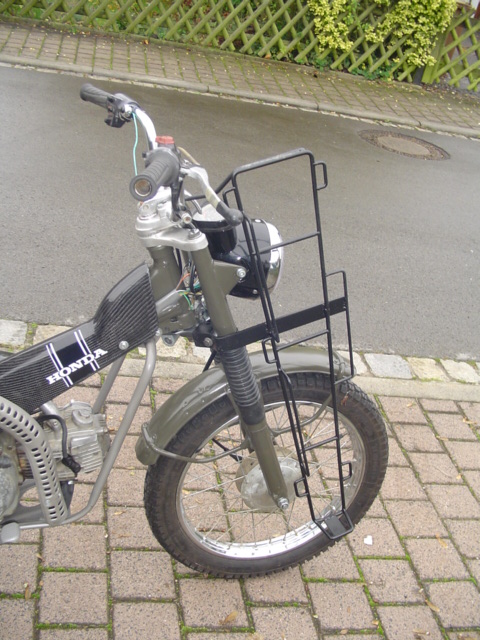 Das Bike auf dem Foto hat einen 6,2 Liter Tank, die Unsrigen halten gute 3 Liter, ob 3,3 oder weniger, werde ich irgendwann herausfinden. Im Korb ist eine Stofftasche mit 0,5 L Sprit und 0,2 L Kettenöl, das klaut so schnell keiner.