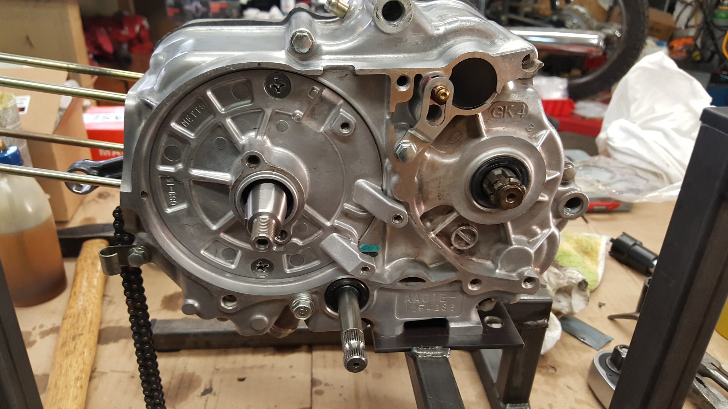 Auf der linken Motorseite wurde eine neue Steuerkette aufgelegt und ein neuer Steuerkettenspanner samt Gummistöpsel montiert. Ebenso neue Simmerringe und die Abdeckkappe für die Schaltwalze.