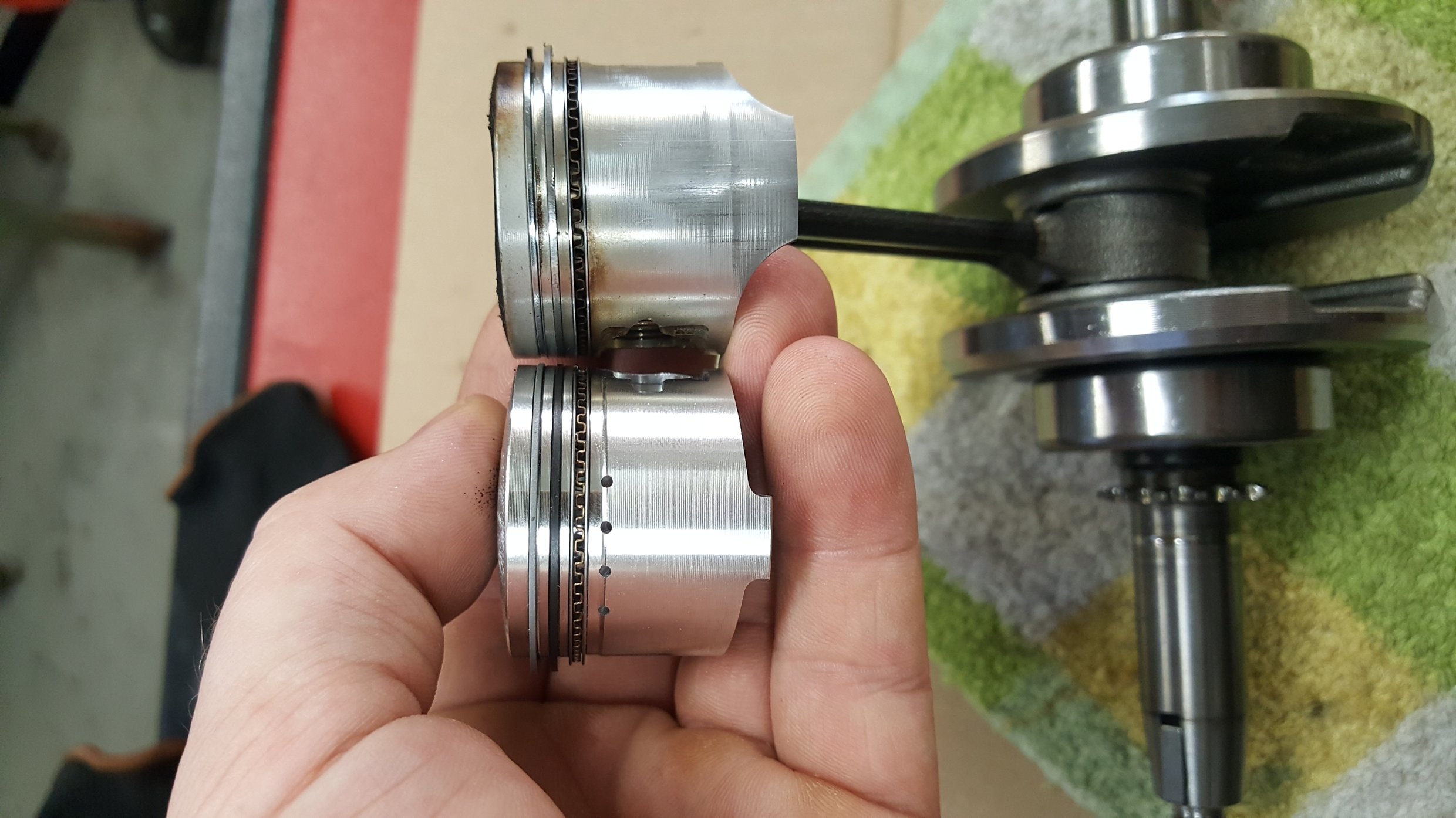 Der Zylinder bleibt ein neuer 39mm Gusszylinder beim Kolben verwende ich eine etwas andere Bauform mit erhöhtem Kolbenboden. Diese Bauform war bei den älteren 12V CUBs für den japanischen Markt mit 3,3KW Leistung verbaut. Die späteren 12V CUBs mit 2,9KW hatten den flachen Kolben verbaut.
