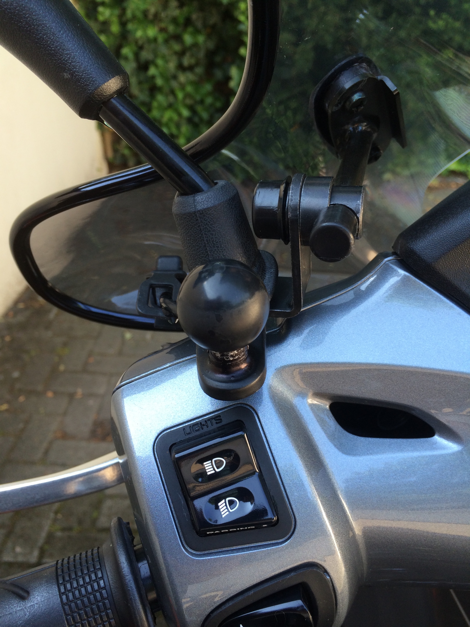 Puig Scheibe, Garmin Zumo Anschlußleitung an Optionsstecker, Schrauben Stahl/Alu und Steckachsen mit Castrol Optimal TA behandelt, CTEK Ladeanschluß Ampel mit Haltelasche eingebaut,