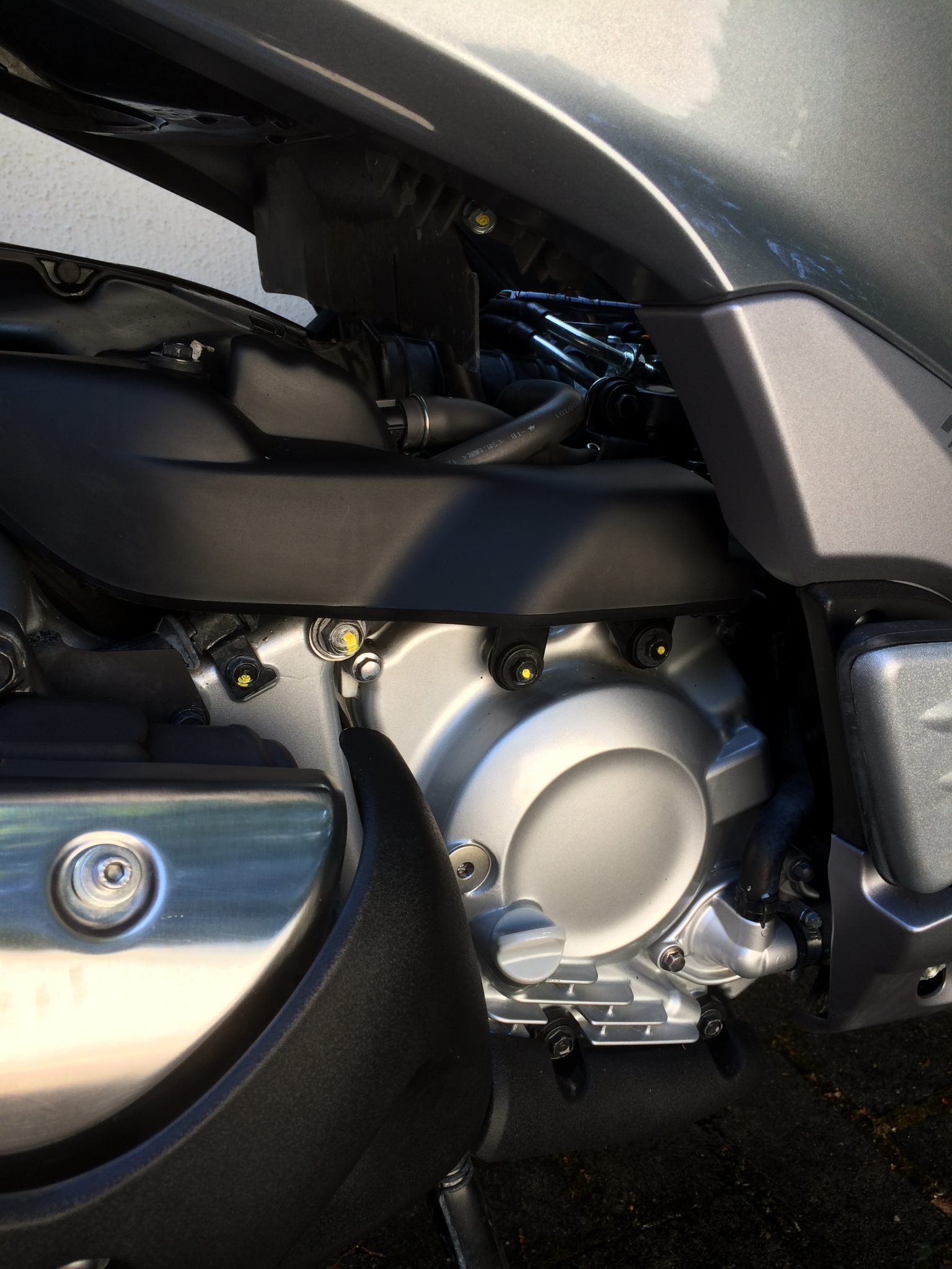 Scheinwerferbirne Philips City Version (Organgereflexion), Nebenbei Rahmenrohre mit Fluidfilm und Hohlraumsonde behandelt, Rucksack von Wenger für das Helmfach angepasst..und zwei Schrauben über