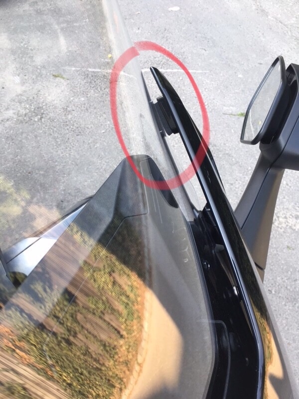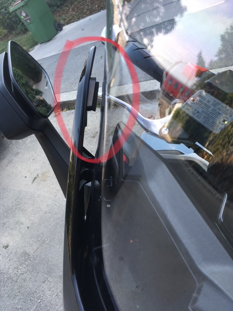 Und ich habe, natürlich, gleich mal eine Frage. Mir ist aufgefallen, dass die Gummipuffer zwischen Frontschild und Windschild unterschiedliche Abstände aufweisen. Also der linke Puffer berührt die Scheibe, der der Rechte Puffer hat einen Zentimeter Abstand zum Windschild. Ist das bei euch auch so? Sieht seltsam aus...