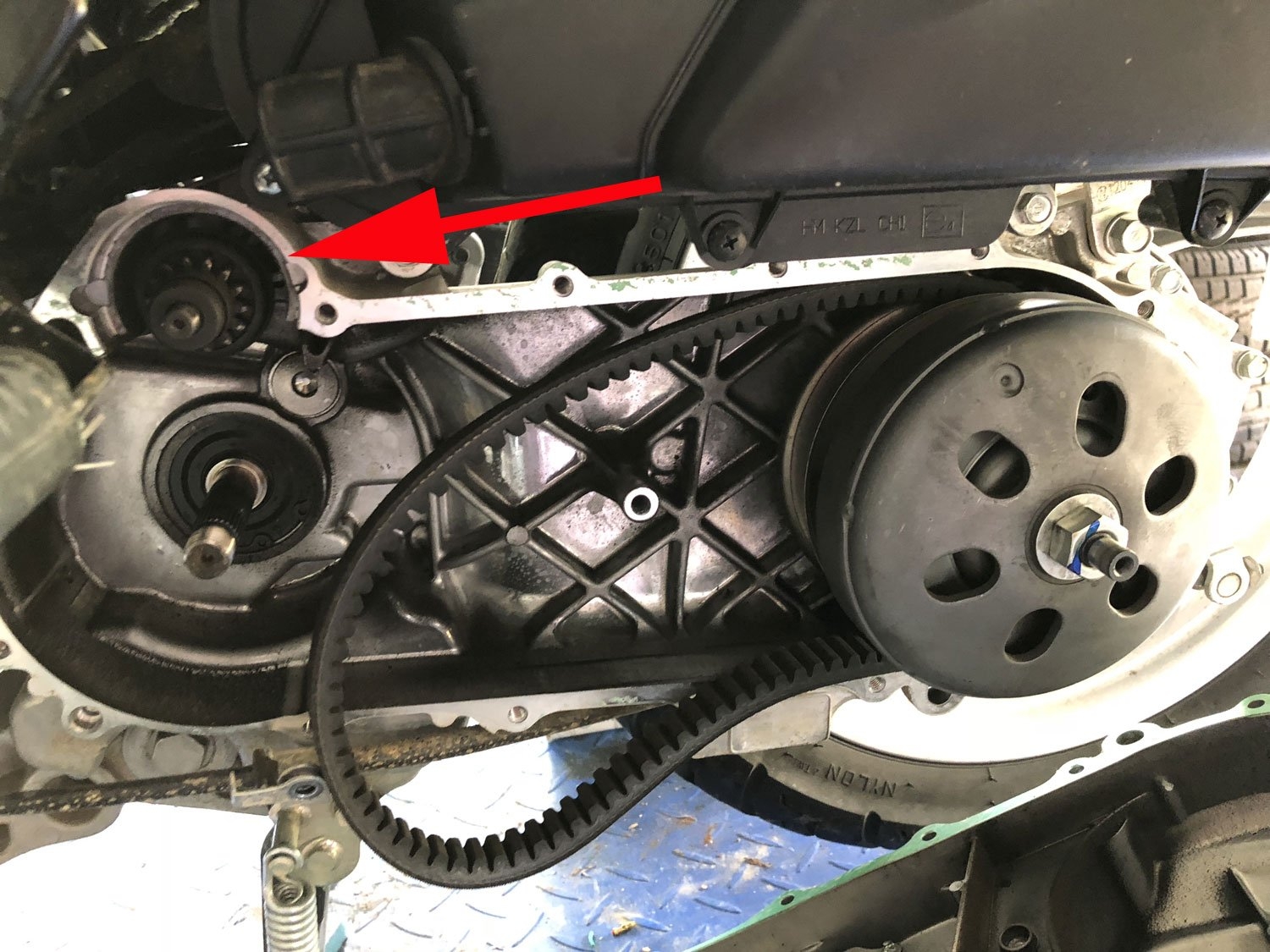 Grund für das Geschepper ist der kleine Racker da oben links im Bild. Der Anlasserfreilauf, mit dem das Starterritzel ausfährt und auf die Zahnscheibe der Variomatik einbeißen soll, ist halt bei dem superteuren Hightech-Roller mit etwas "Toleranz" gefertigt, deshalb akustisch etwas auffälliger als üblich. Wenn da nicht Zahn auf Zahn trifft, schepperts mehr und startet nicht. Dann halt einfach noch mal aufs Knöpfchen drücken.