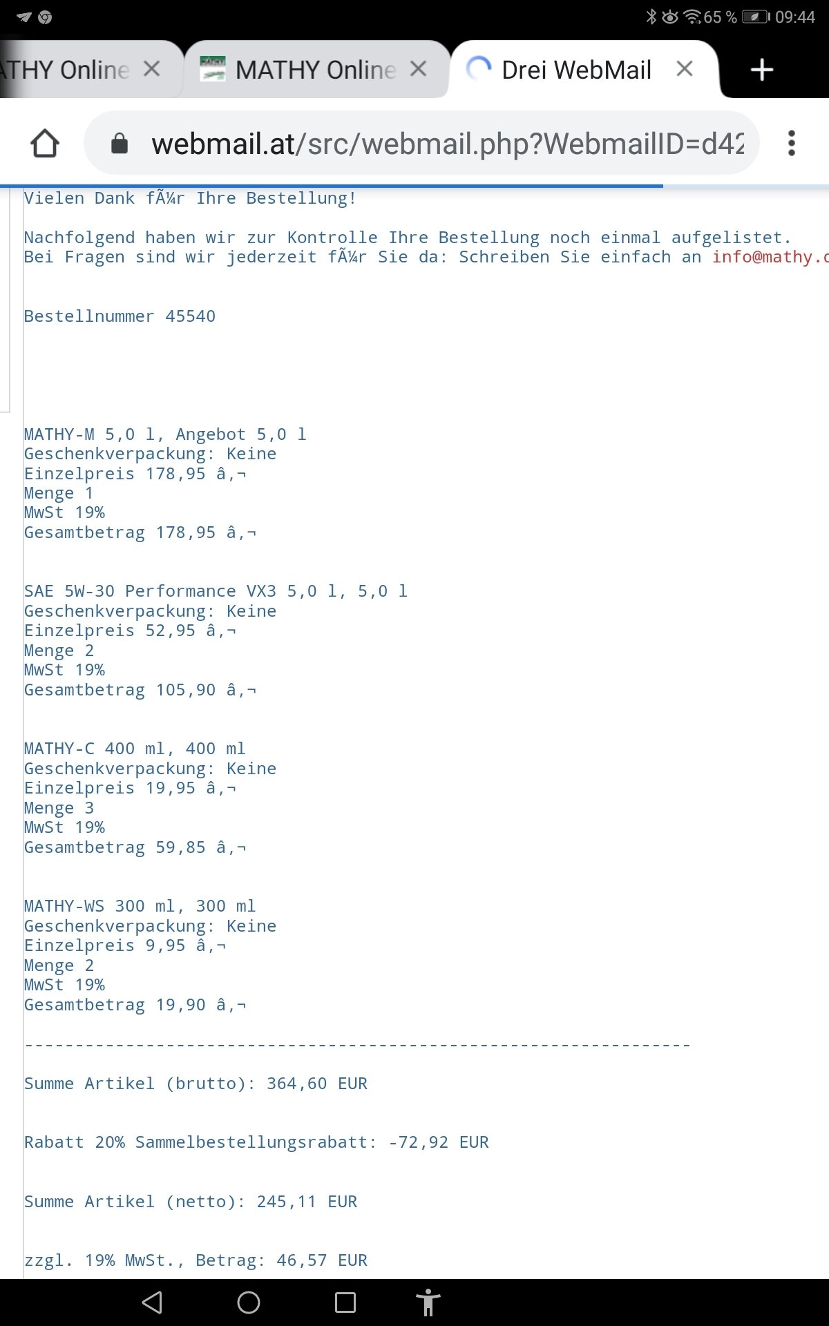 Für die Smart CDI der Kinder, W451er, habe ich Öl und Mathy-M bestellt. Schon die 2. Bestellung in 2019! Hinausgeschmissenes Geld - maybe - ber es tötet keine Motoren.