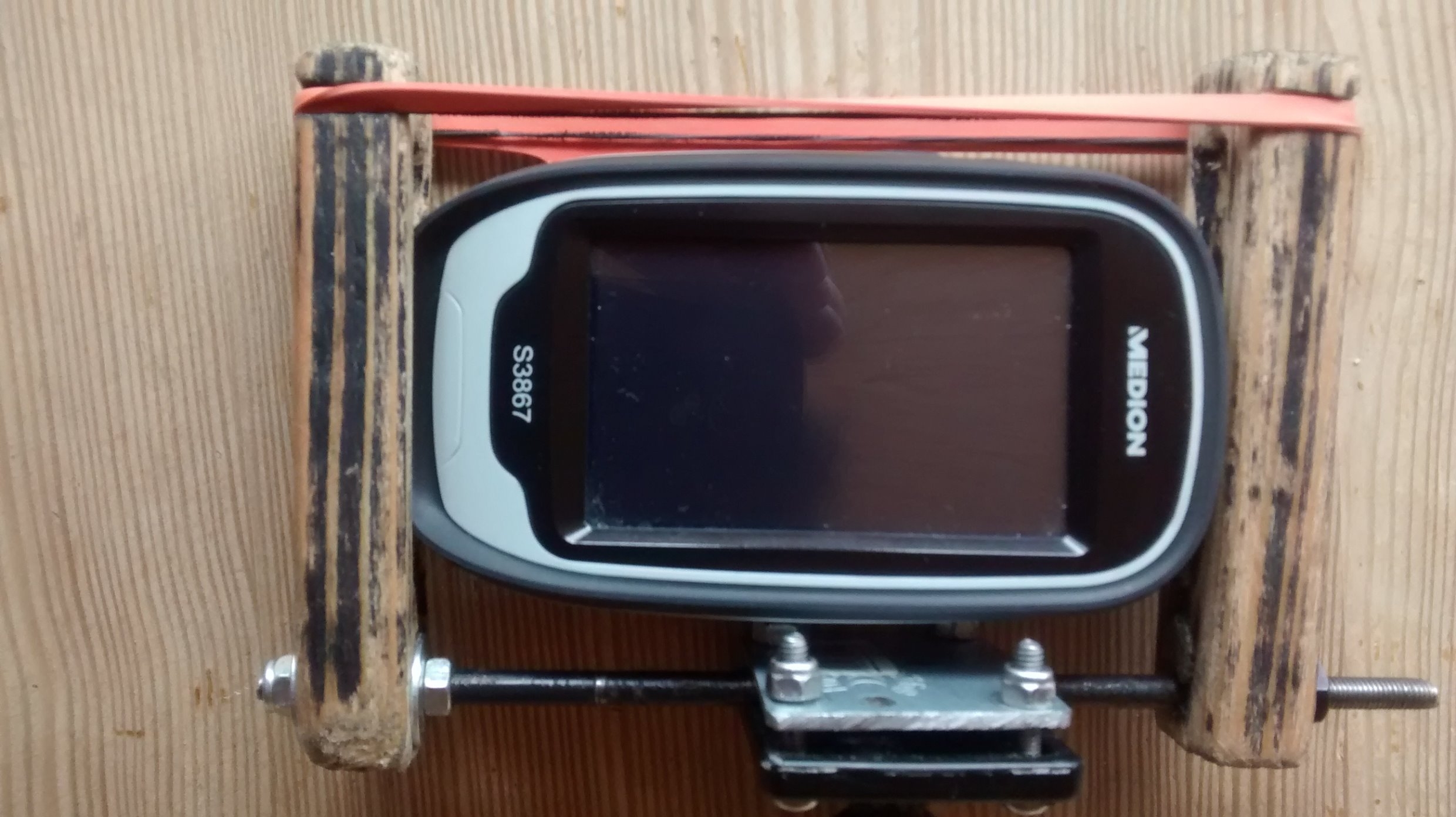 Jetzt habe ich mir mit dem übrigen Garmin Zubehör eine Handyhalterung gebastelt.