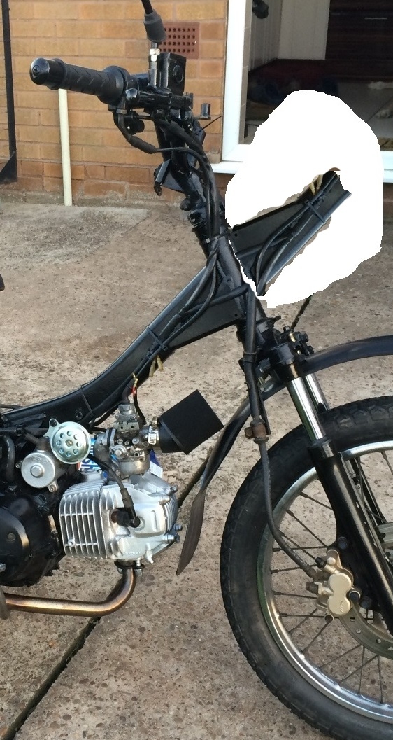 Noch was hier kämpft auch einer mit dem Anbau einer rahmenfesten Verkleidung an ein Moped: