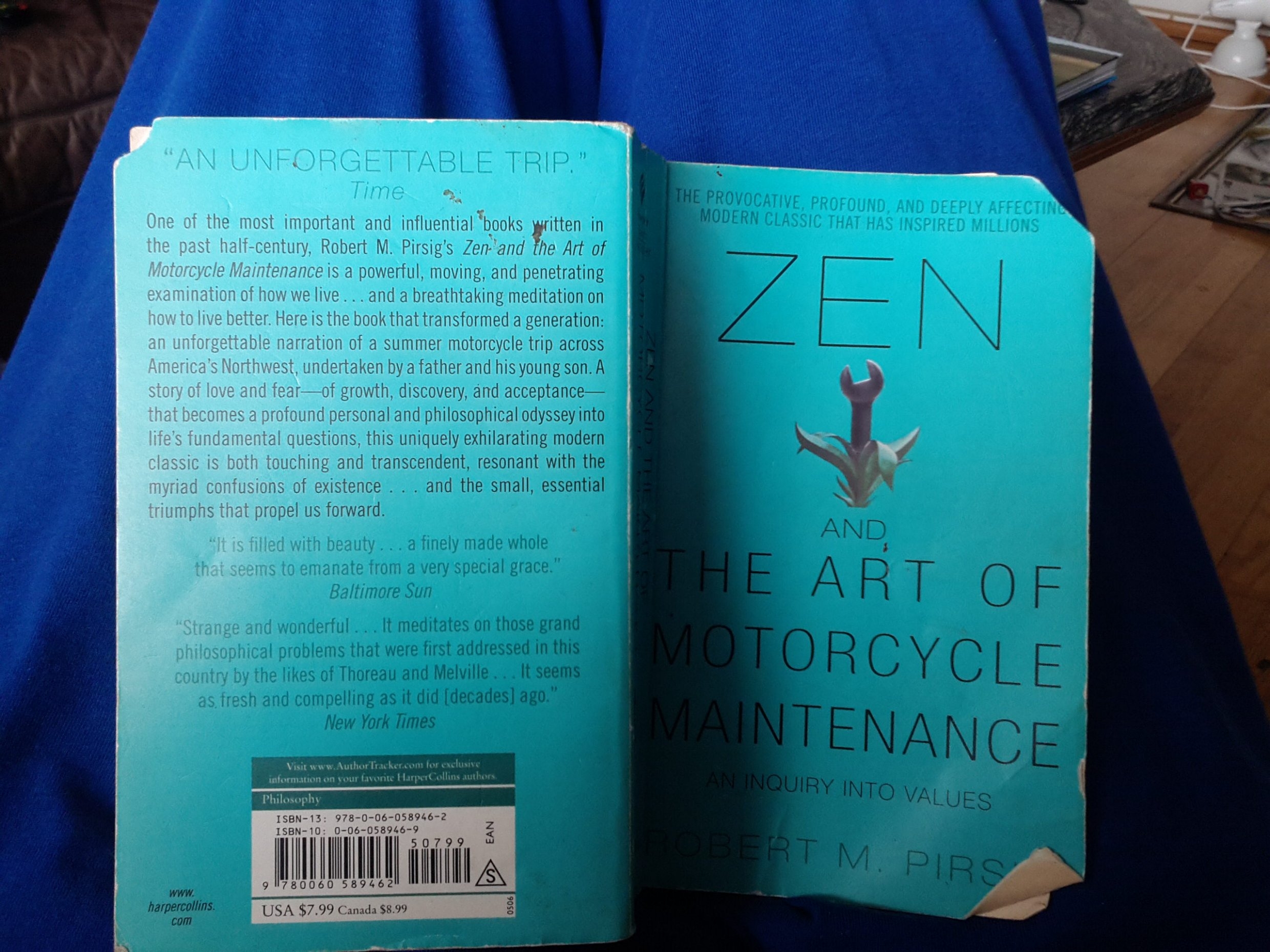 Mein Phaidros kommt bei "I can see by my watch, without taking my left hand from the grip, that it is 8.30 in the morning. The wind, even at 60 miles an hour, is warm and humid. When it is this hot and muggy at 08.30 I guess, how its goning to be in the afternoon." ZatAoMM