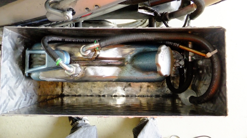 el. betrieben wird die Pumpe zunächst über einen Drucktaster der vom Fahrersitz aus erreichbar ist. In ca. 5 Minuten müsste das umpumpen bequem erledigt sein. Von außen ist nur noch die 8mm Leitung und die Schottverschraubung zu sehen.