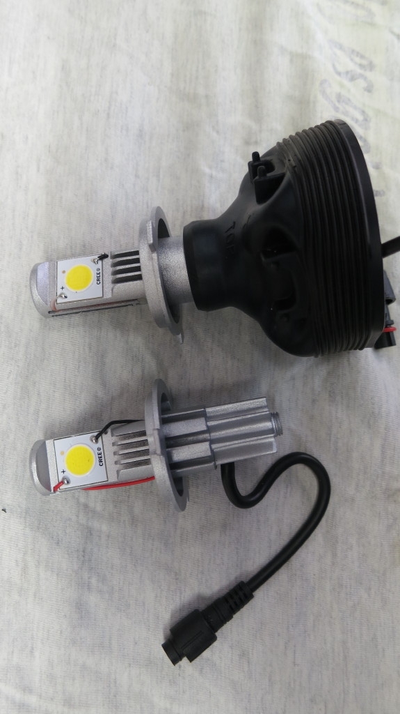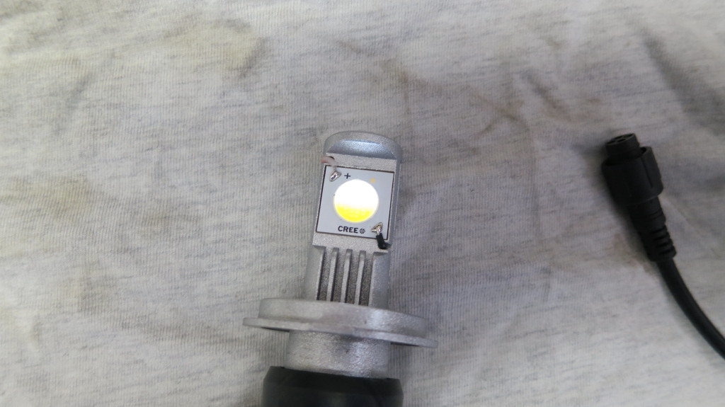 Vom Lichtschalter geht ein Weisses (Abblendlicht) und ein Blaues (Fernlicht) Kabel zur Birne, der Schalter bekommt sein Strom direkt aus dem Regler mit einem gelben Kabel.