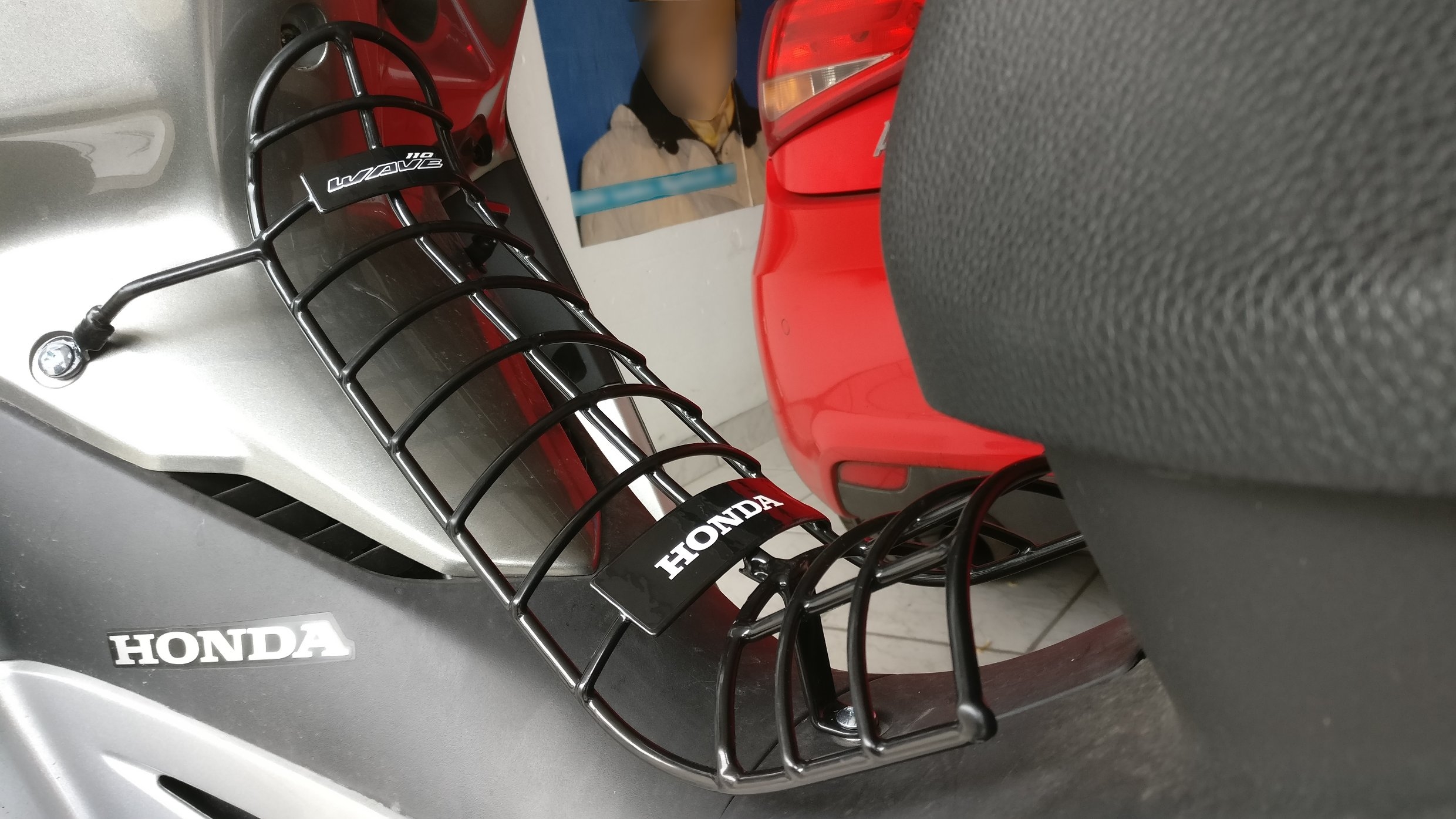 Jetzt der ultimative Test (kein Jux)! Schütte mit der Gießkanne eine ordentliche Ladung Wasser mit einem guten Schuß Spüli über die Plastikverkleidung der Front, Kotflügel und Lenkerverkleidung. Nicht mit Wasser sparen.