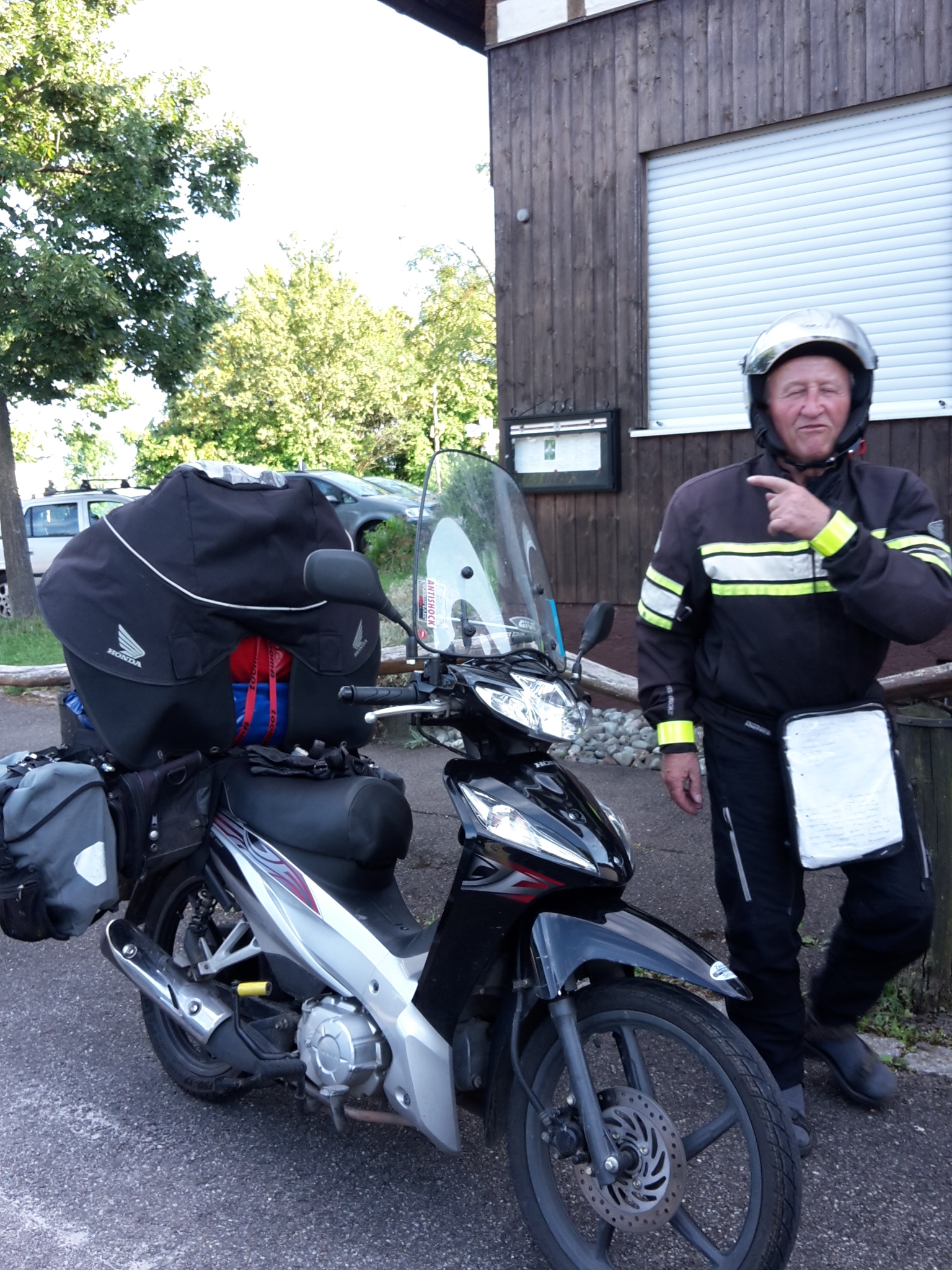 Mit Gepäck und in dem Alter noch mit der wave zu fahren ... respekt
