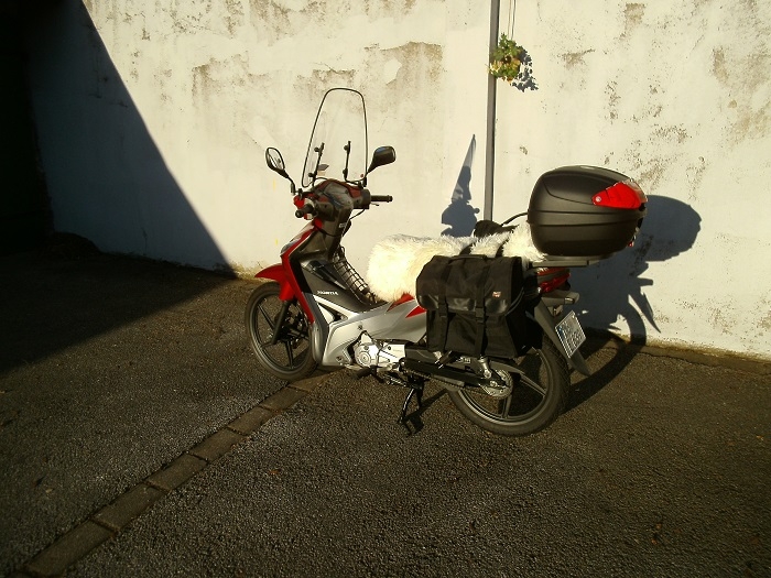 Das Wetter war sehr schön heute es kamen schon so leichte Frühlings Gefühle, da könnte man ja mal Schauen wie gut man schon für die kommenden Ausflüge Ausgerüstet ist. Im Keller fand ich dann noch 2 Taschen und ein Schafsfell eine Gepäckrolle für Zelt und Schlafsack sowie Kocher und Topfe sind auch vorhanden Termarestmatte hatte ich auch erst neu geholt. Besteck Taschenlampe Feuerzeug und diverse Wasch Utensilien sind in einem dafür vorgesehenen Beutel vorhanden. Unter der Sitzbank ein 1 Liter Kanister Reserve Benzin sowie ein halber Liter Öl ne Zündkerze und etwas Werkzeug ein wenig Kettenspree wehre auch nicht verkehrt.Na ja von mir aus kann der Frühling Kommen. :sonne: :sonne: :sonne: :sonne: :sonne: :sonne: :sonne: :sonne: :sonne: :sonne: :sonne: