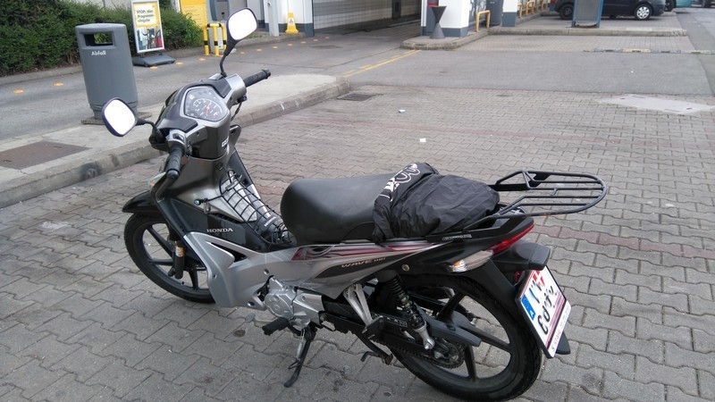 Da sich der Sitzbankschoner dank UV-Licht in seine Bestandteile zerschlissen hat, bin ich zum Louis gegondelt und habe meiner Wave nen Neuen spendiert. Spart das putzen der Bank bei Regen :D .