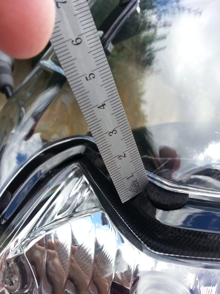 Die Scheibe liegt im unteren Bereich nicht an der Lampenverkleidung des Rollers an sondern es besteht ein Spalt von ca. 0,3-0,9 cm.