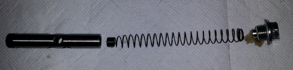 Ich hab dann den Bolzen einfach wieder in das Loch reingesteckt, Feder hinterhergeschoben und Schraube wieder drauf.