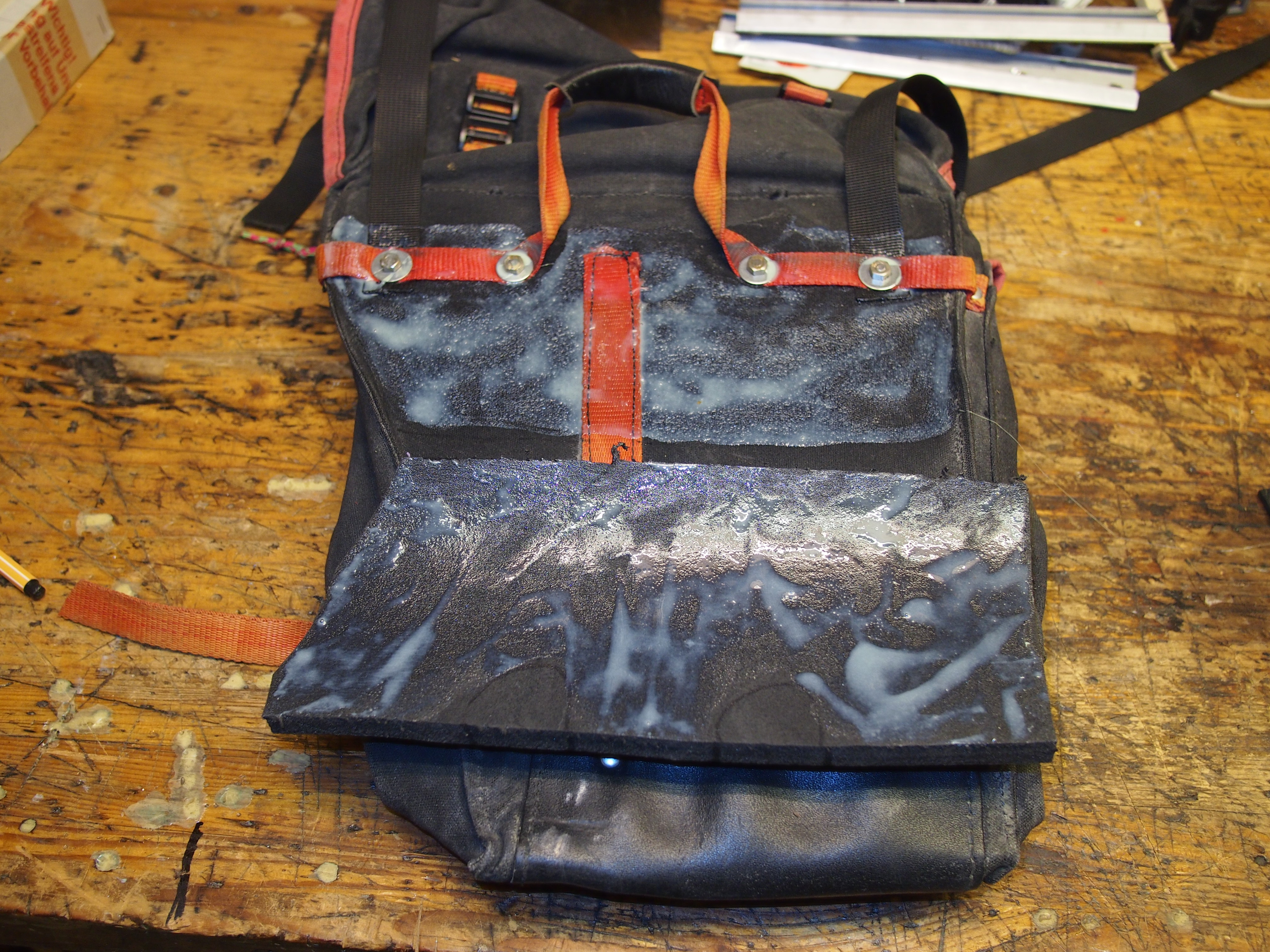 -Isomattenreste als Scheuerschutz mit Pattex aufgeklebt.