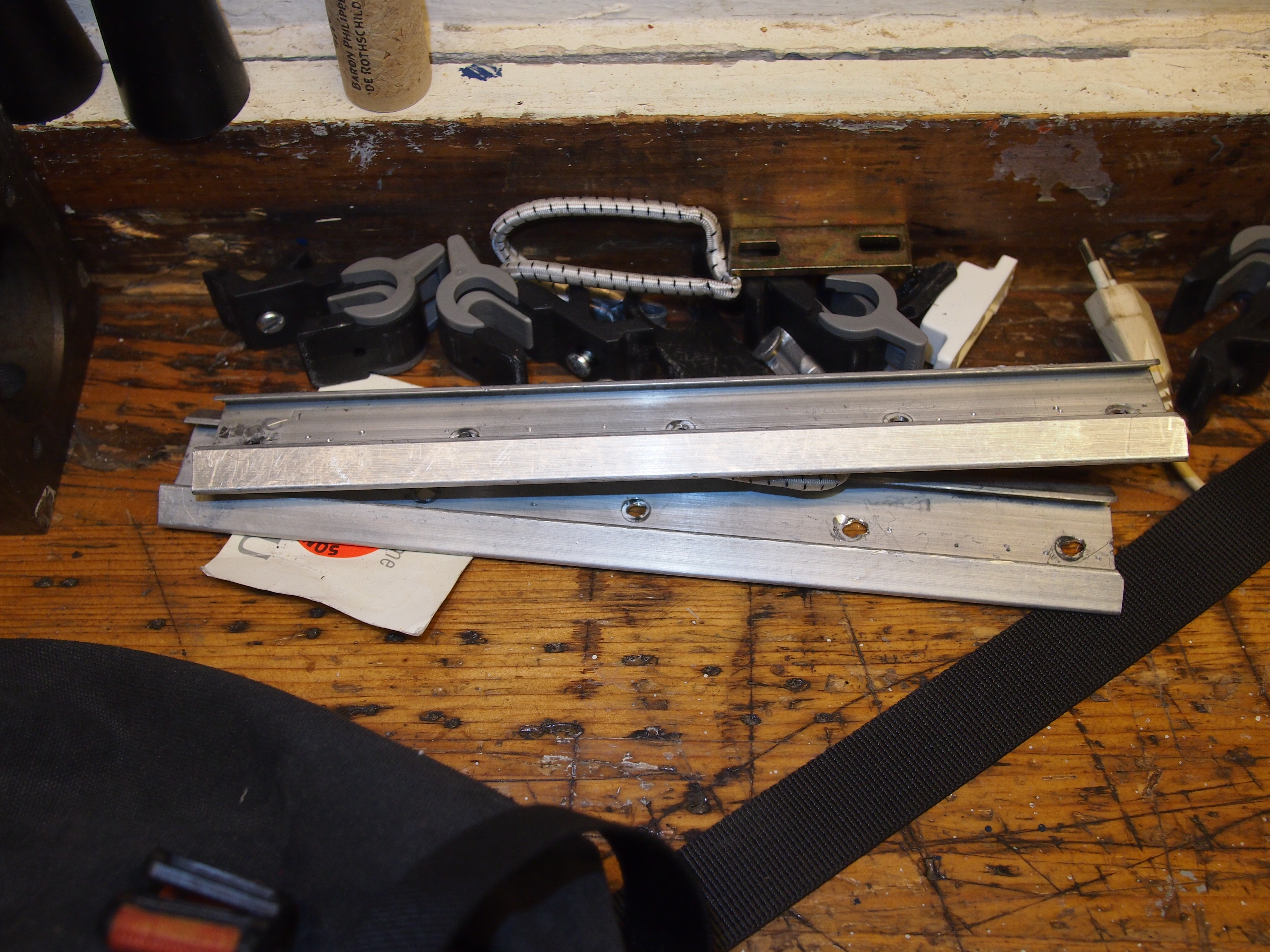 -Fußleistenreststücke zurechtgesägt und -gebohrt, das sind die neuen Halter innen,