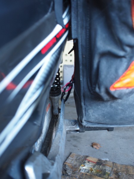 an den Zurrösen der Soziusfußrastenhalterung.