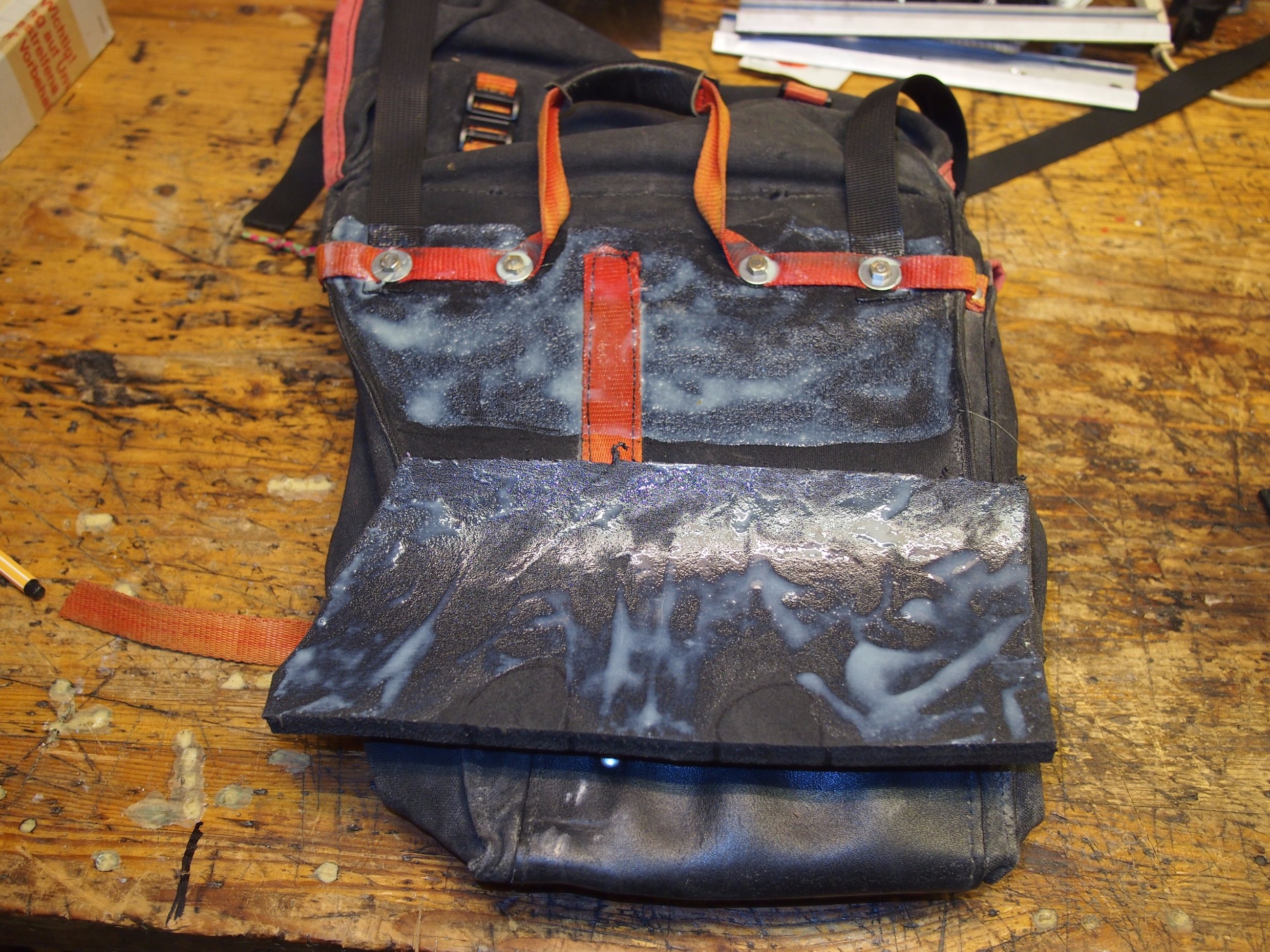 Riemen angeschraubt. Dann ein Stück Schaumstoff als Schutz vor Kratzern aufgeklebt.