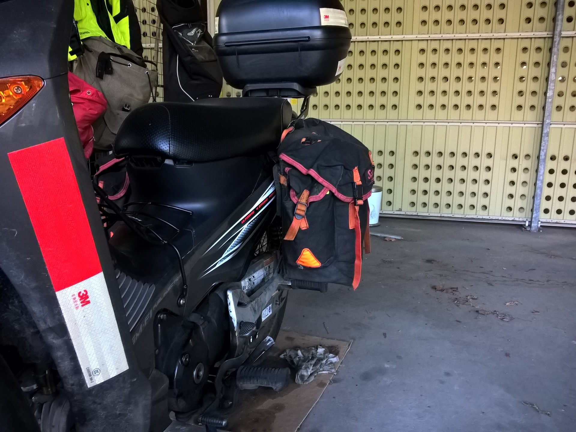 Die Taschen werden einfach übergeworfen, stehen auf den Fußrasten und ich kann sie